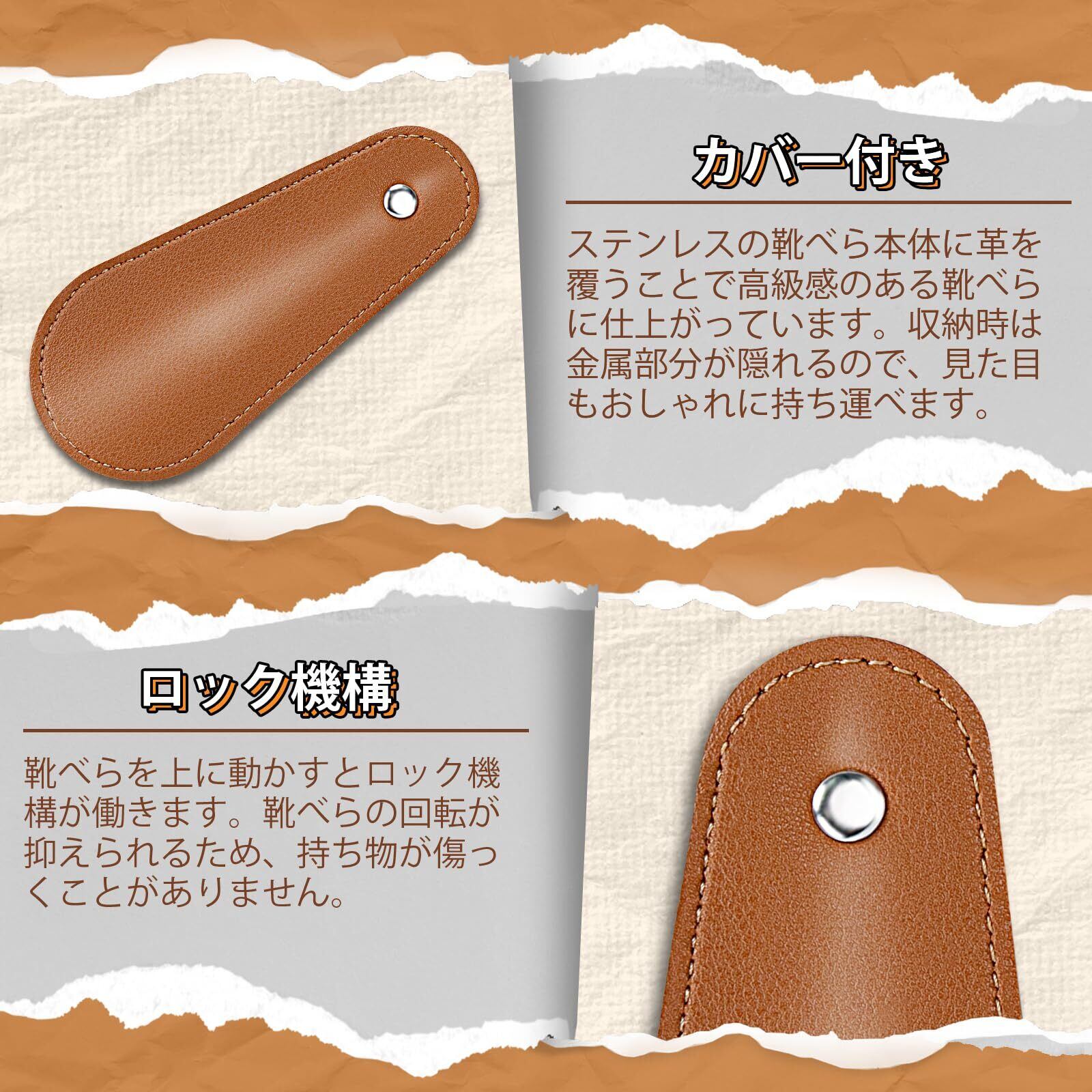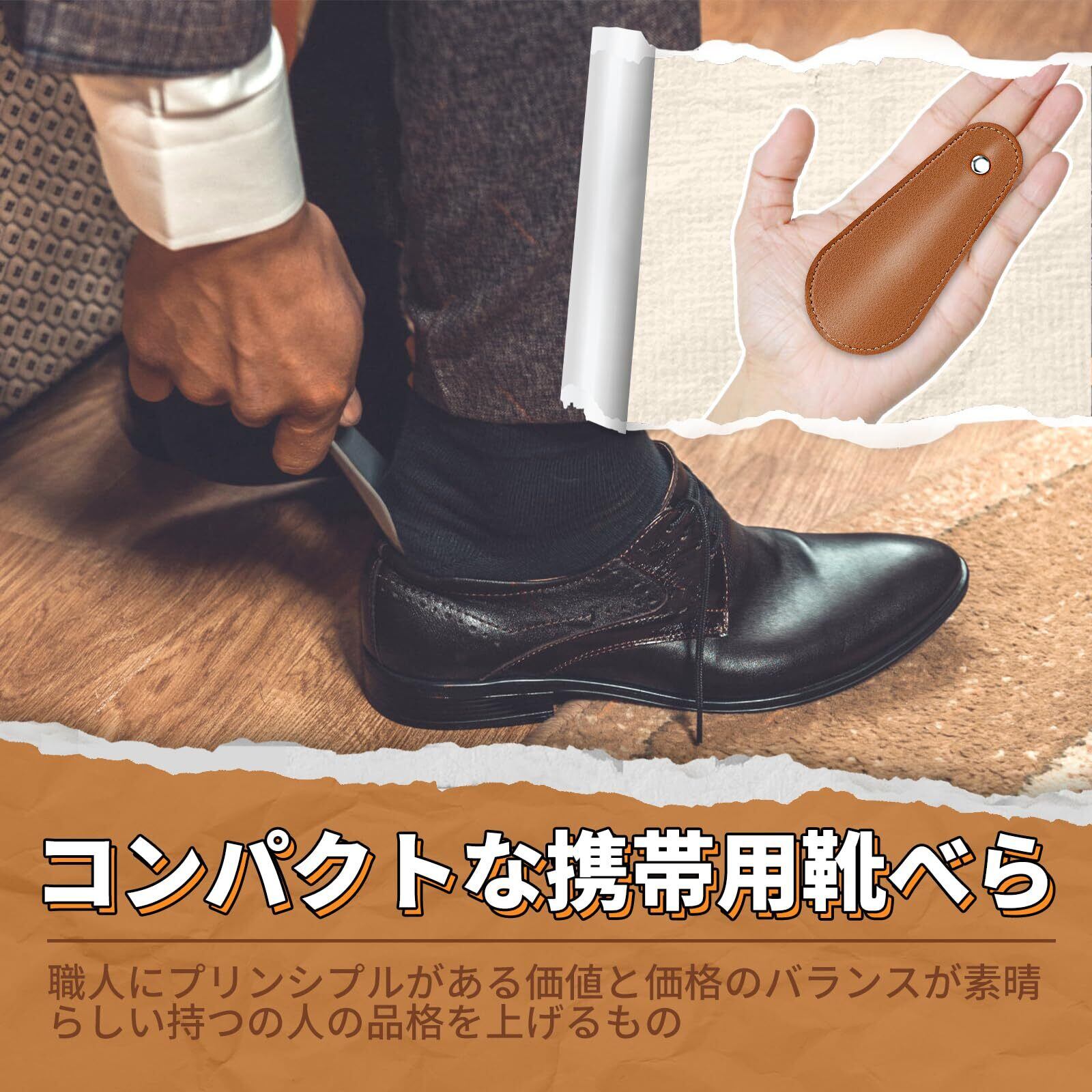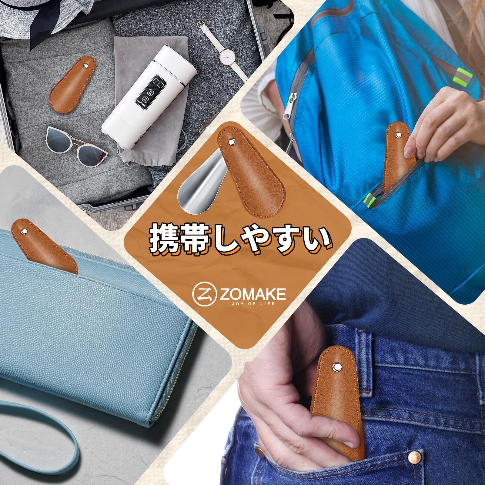 [ZOMAKE] 靴べら シューホーン 携帯用 ミニ PUカバー ステンレス製 おしゃれ コンパクト 短い 耐用 軽量 男性、女性、子供、高齢者用