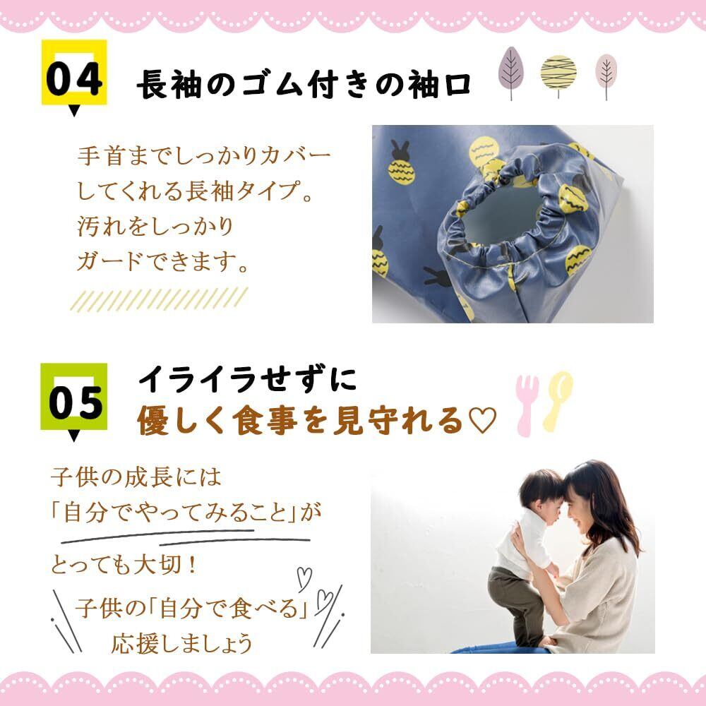 【優しく食事を見守れる】全身すっぽりカバーするから、子供に自分で食べる習慣を身につけることができます。自主的に食事をする楽しさを体験しましょう。