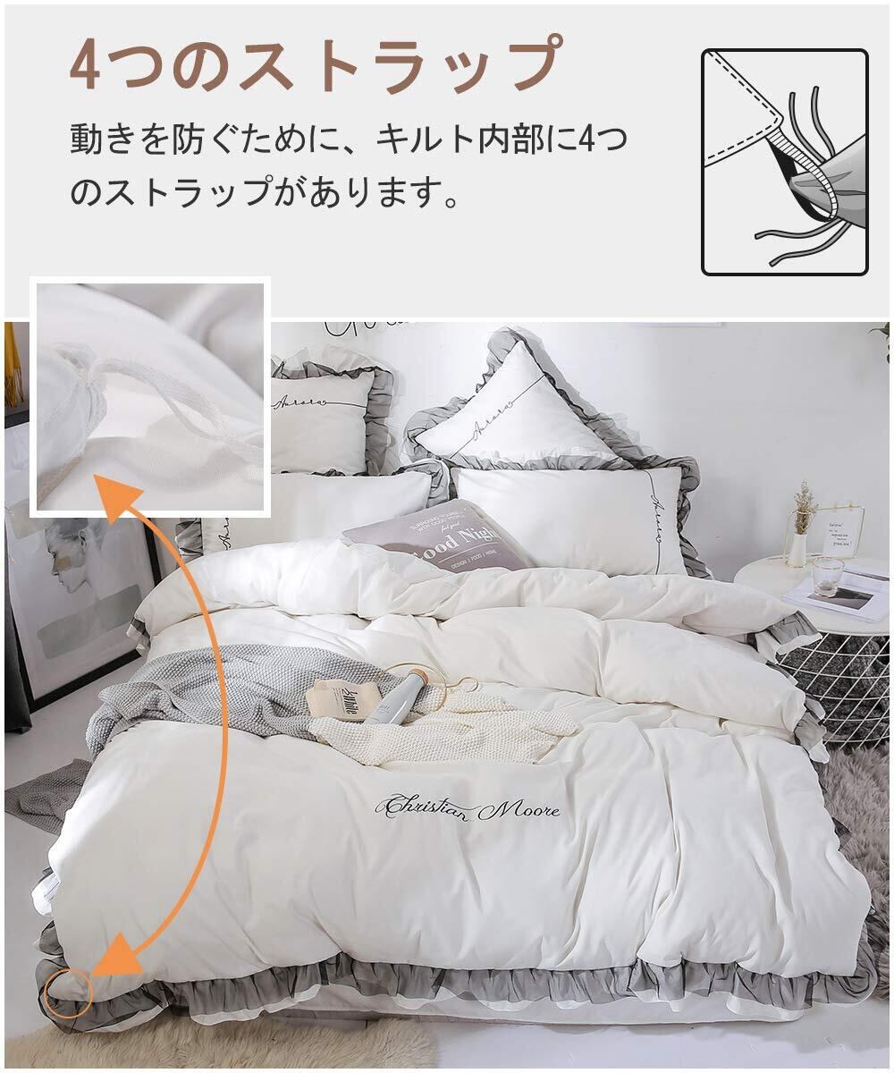 【360°全周保護】ボックスシーツ360度のカバレッジ、ズレ防止で子供がベッドには遊んでも皺になりません。動きを防ぐために、キルト内部に4つのストラップがあります。