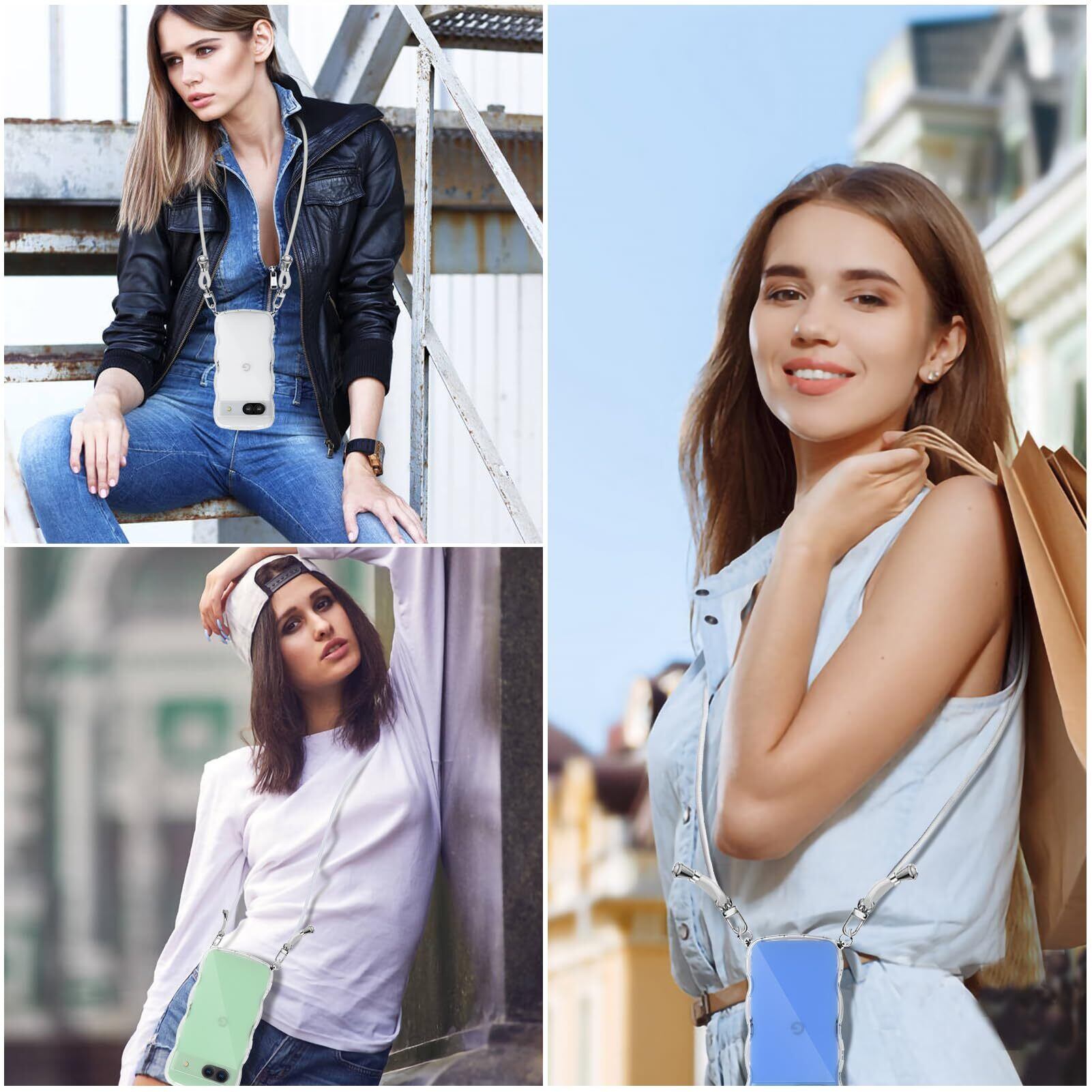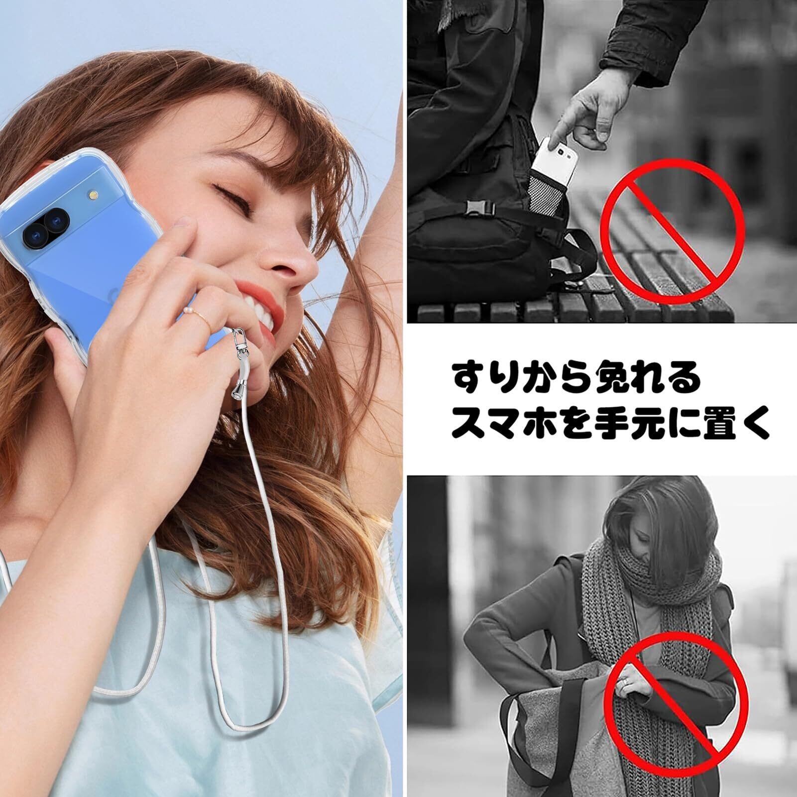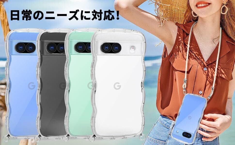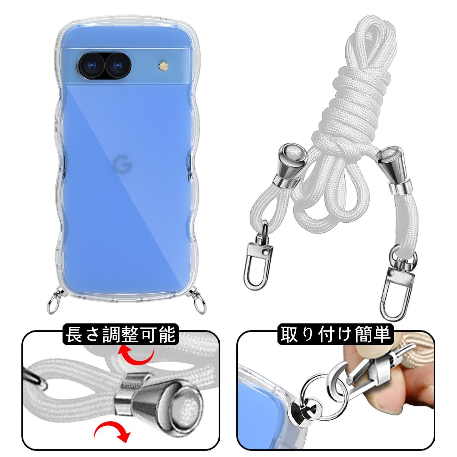 Pixel 8A ケース クリア ショルダー ストラップ付き 人気 かわいい 全面保護 グーグルピクセル8A カバー スマホケース 首かけ 肩掛け TPU 薄型 軽量 取り外し可能 長さ調整可能 ワイヤレス充電対応(透明)