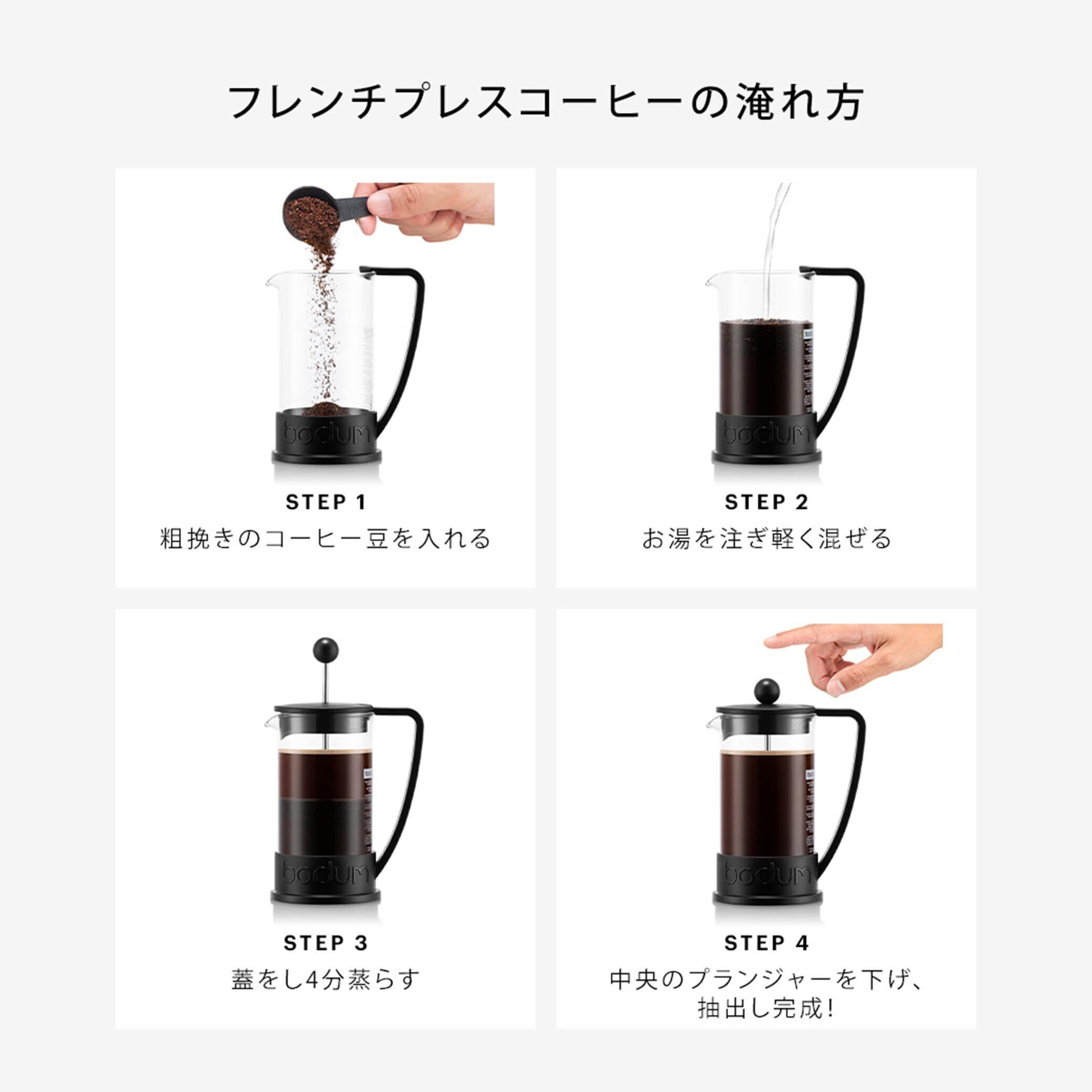 BODUM ボダム コーヒーメーカー コーヒープレス BRAZIL ブラジル フレンチプレス コーヒーメーカー 350ml ブラック ステンレスフィルター ガラスビーカー 浸漬式 コーヒー 【正規品】 10948-01