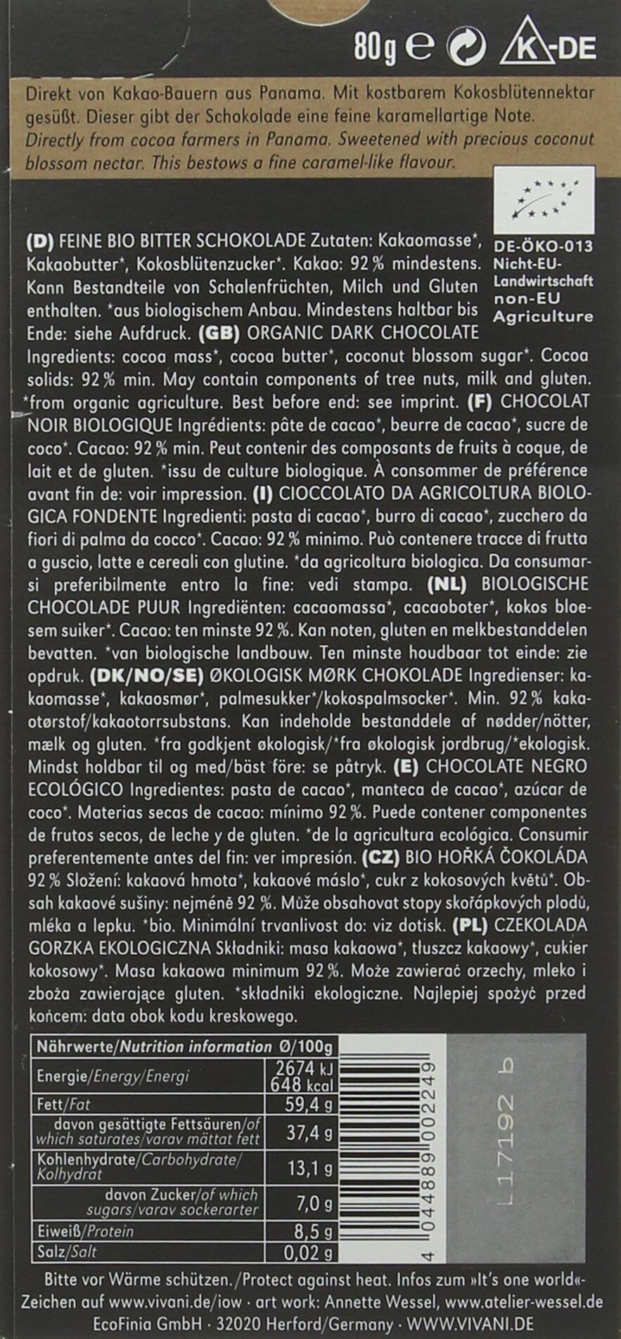 Vivani オーガニックエキストラダークチョコレート92% 80g ×5セット