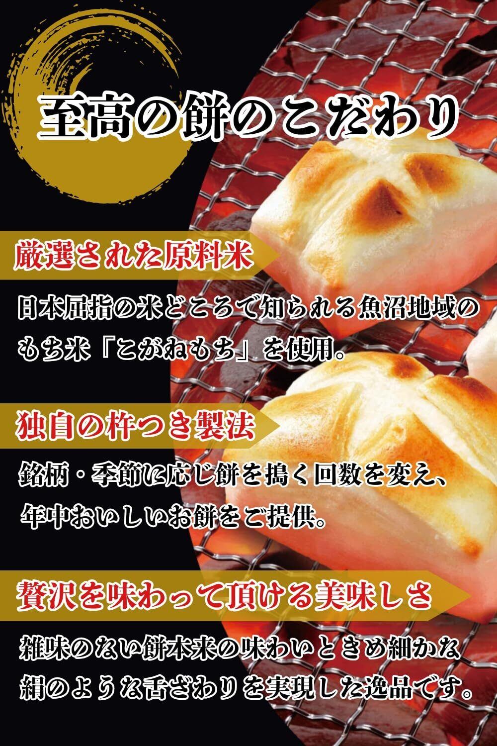日本一美味しいと評判の、新潟県魚沼産こがねもちを100%使用、コシと粘りが違います。