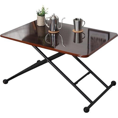 不二貿易 昇降式テーブル センターテーブル 幅90~109.5×奥行60×高さ11.5~70cm ブラウン ガス圧 無段階調整 キャスター付き 完成品 74710