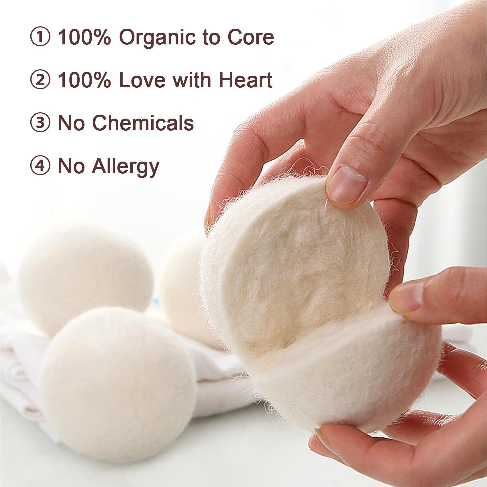 ウールドライヤーボール、化学薬品不使用の柔軟剤入り洗濯用ボール、再利用可能な天然繊維、シワと乾燥時間を短縮、高密度ウールボール、6個入り