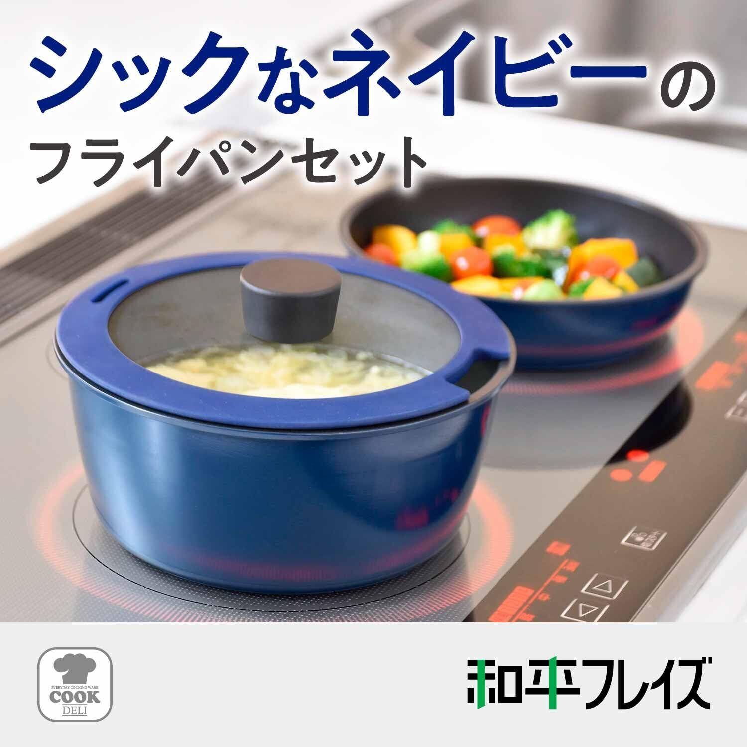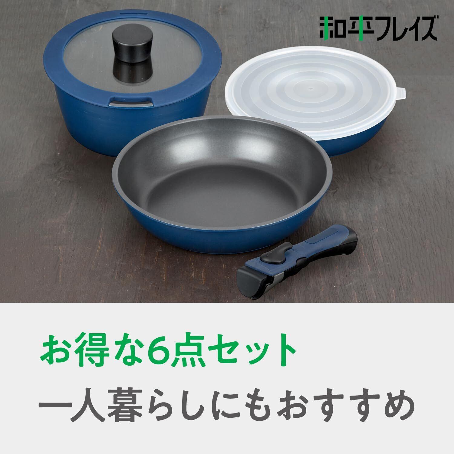 和平フレイズ 取っ手の取れる6点セット IH対応 トップクラスの耐久性 ダイキン工業製シルクウェアEZ使用 クックデリー AMA-9712 ネイビー