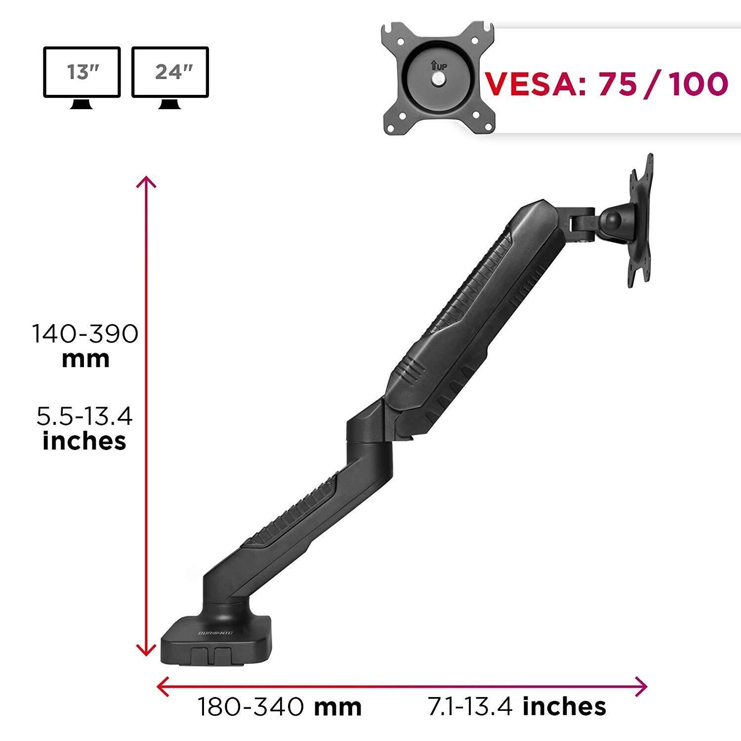 Duronic 一画面用モニターアームスタンド DMGM5X1/シングルPCデスクマウント/黒/アルミニウム/スチール/高さ調整可/15-32インチモニター/VESA75/100/360度回転/一画面用/デスク周りグッズ