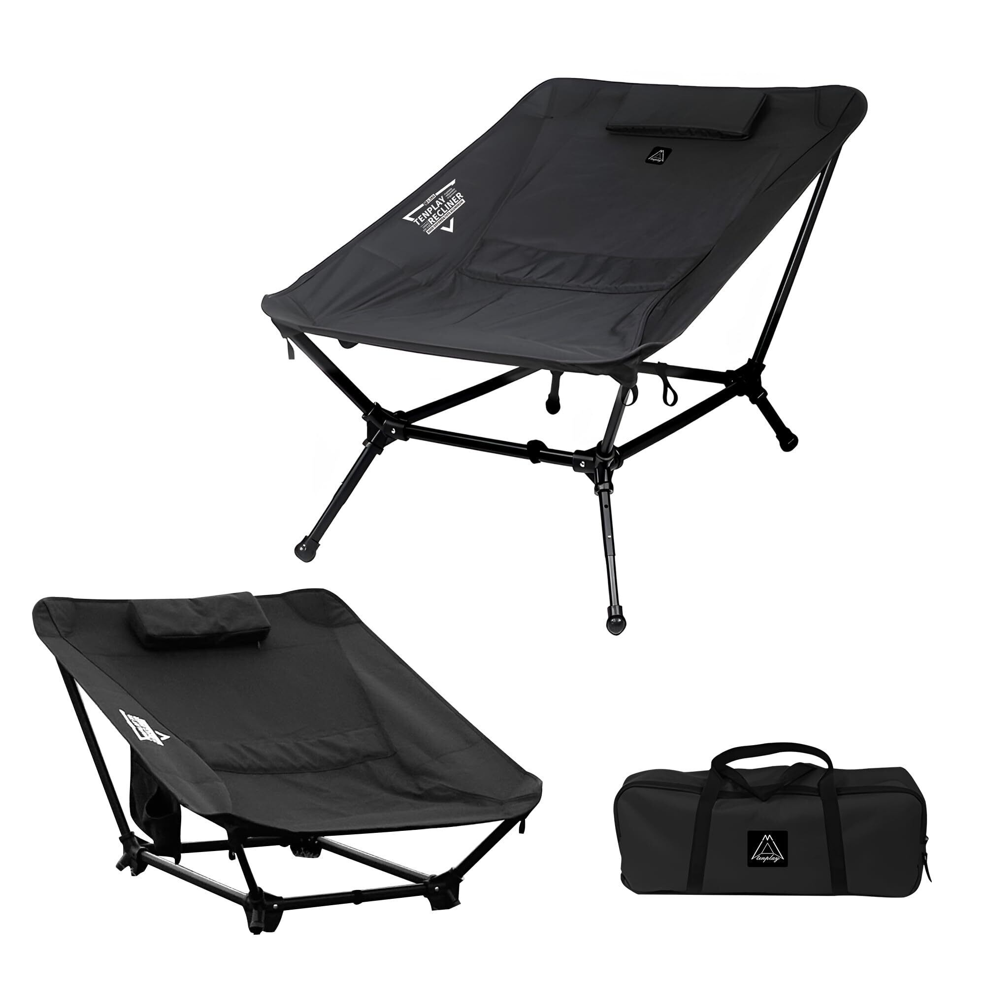 TENPLAY 2025年モデル リクライニングチェア アウトドアチェア 折りたたみ キャンプ椅子 高さ調節が可能な5WAY仕様 角度調節可 グランドチェア 昼寝 7075アルミ 900Dオックスフォード イスワイド アウトドアソファー ローチェア 枕付きコンパクト イス ハイバック 椅子 収納バッグ付き ハイキング お釣り 登山 耐荷重150KG (ブラック)
