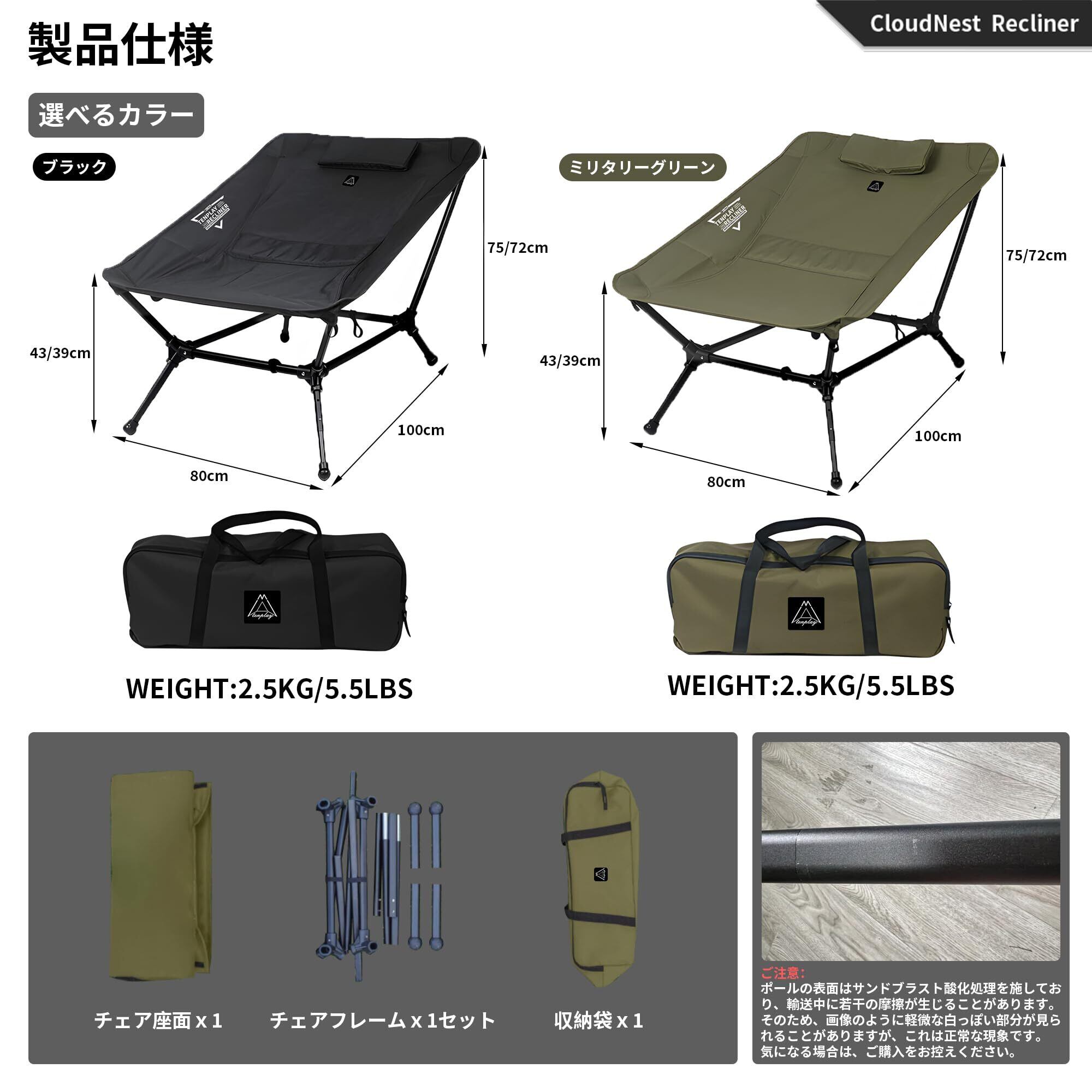【5WAY仕様・リクライニング角度約140度から180度まで可能】 前後の脚が自由に高さ調節可能、さらに取り外しも可能。多角度で調整でき、約140度から180度までリクライニングが可能です。アウトドアシーンで大活躍する移動型のファーストクラスチェア!リクライニングチェアの最高峰です。 5WAYリクライニング機能:お好みに合わせた座り心地に調整可能で、リラックスした時間を提供します。従来の折りたたみ椅子を超えた、革新的で進化したデザインです。