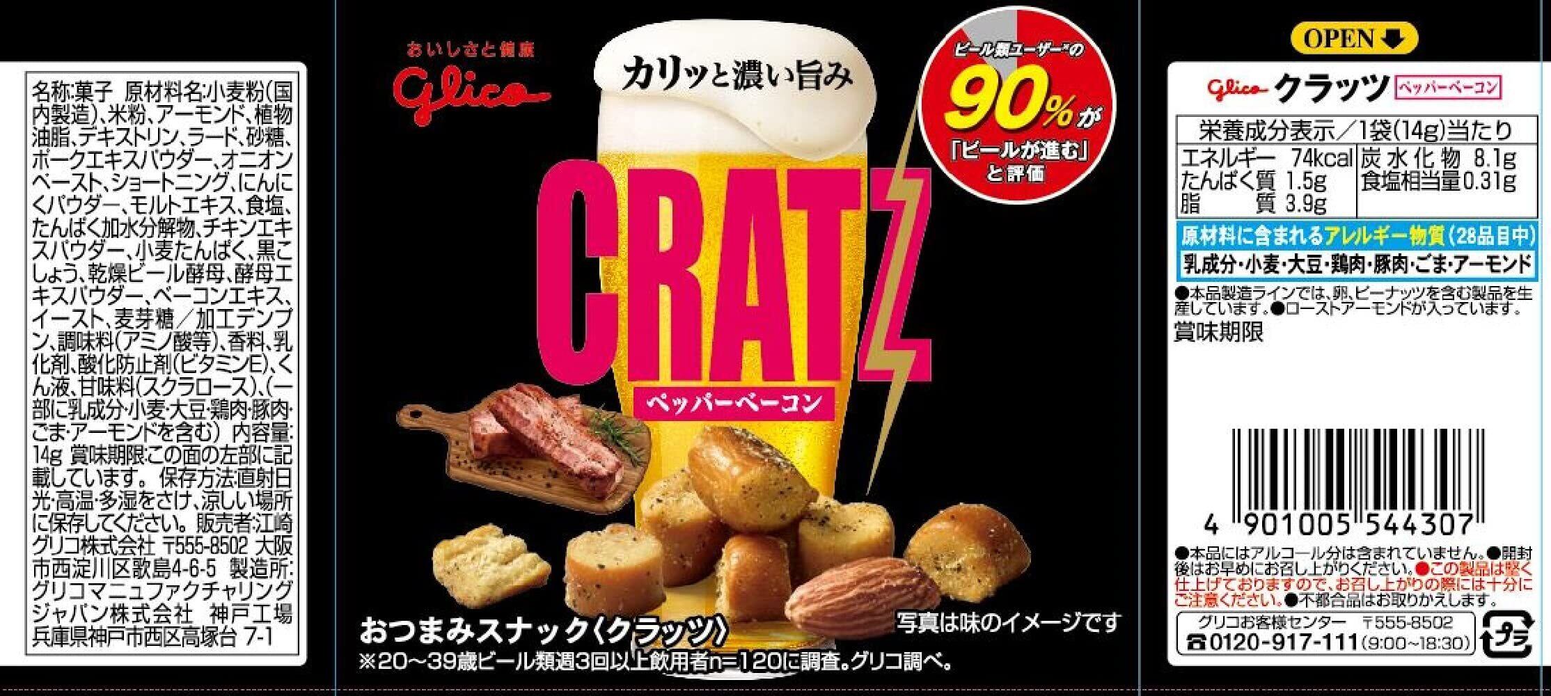 クラッツ ペッパーベーコン ミニタイプ 14g×20個 江崎グリコ おつまみスナック 個包装 お酒に合う ビール ハイボール 酎ハイ glico cratz