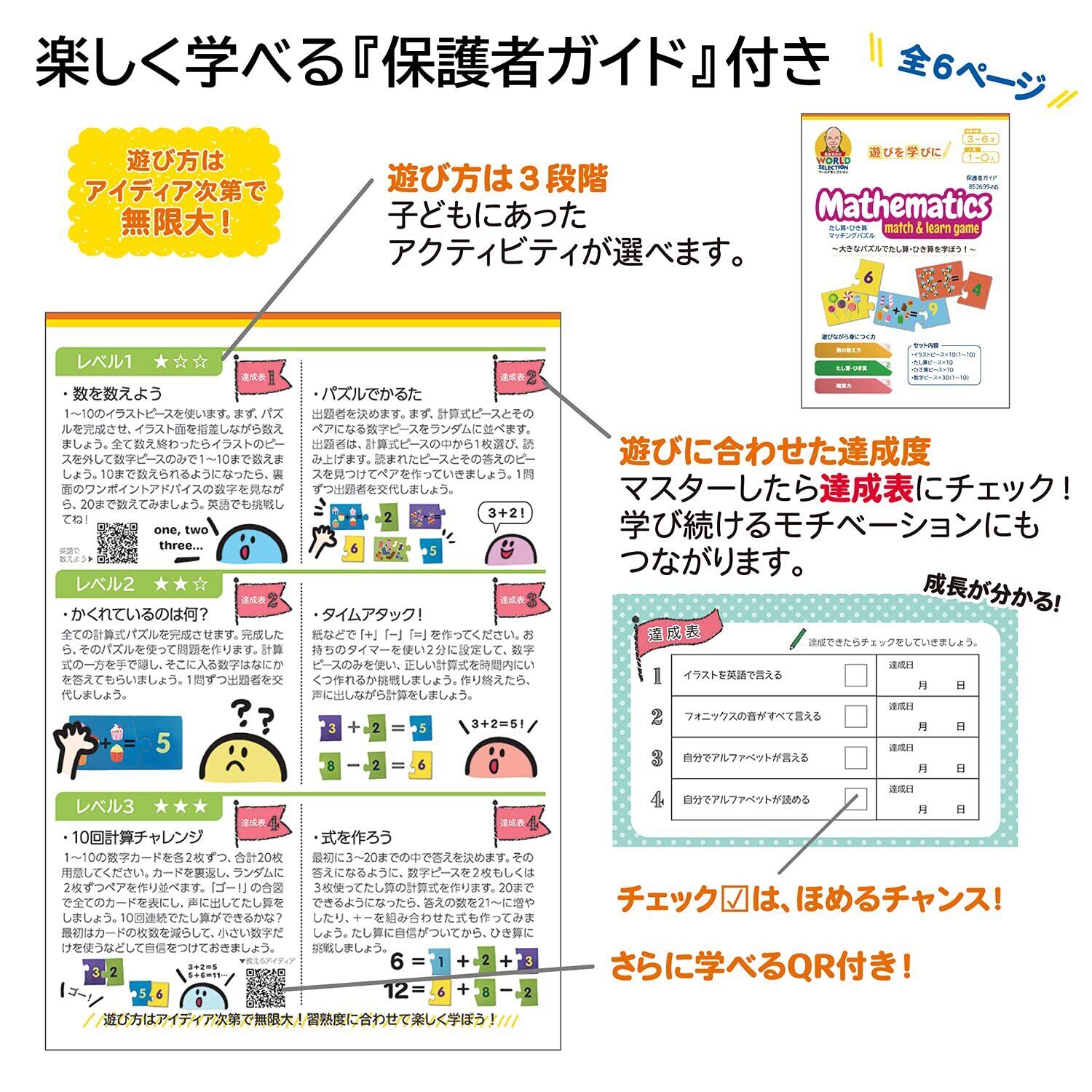 長友先生のワールドセレクション 幼児向け算数ゲーム はじめての算数 マッチングパズル たし算&ひき算 正規品 853603-JNS