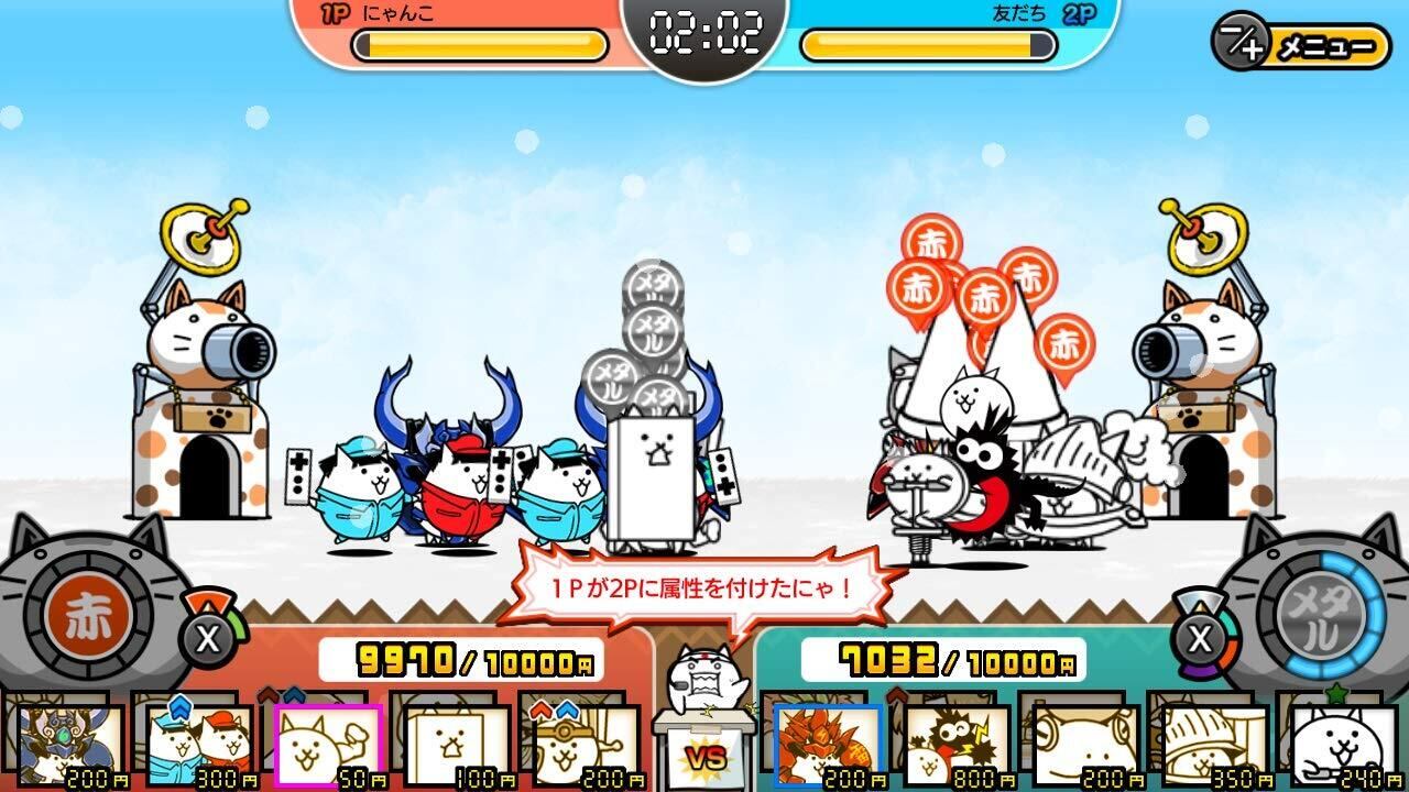 今回、そんな「ふたりで! にゃんこ大戦争」に新たなモード「対戦モード」が登場! 遂にお友達と「にゃんこ大戦争」のバトルができるようになりました。おすそわけ対戦とローカル対戦に対応した「対戦モード」の実装を記念して、待望の「ふたりで! にゃんこ大戦争」のパッケージソフトが発売されます。