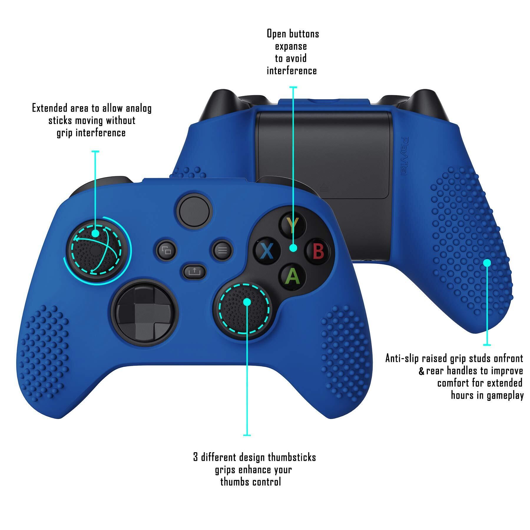 eXtremeRate PlayVital 3D Studded版Xbox Series X/Sコントローラーに対応用アンチスリップシリコーンカバースキン、黒い親指グリップキャップ6つ付き、Xbox Coreワイヤレスコントローラ対応用ソフトラバーケースプロテクター【ブルー】