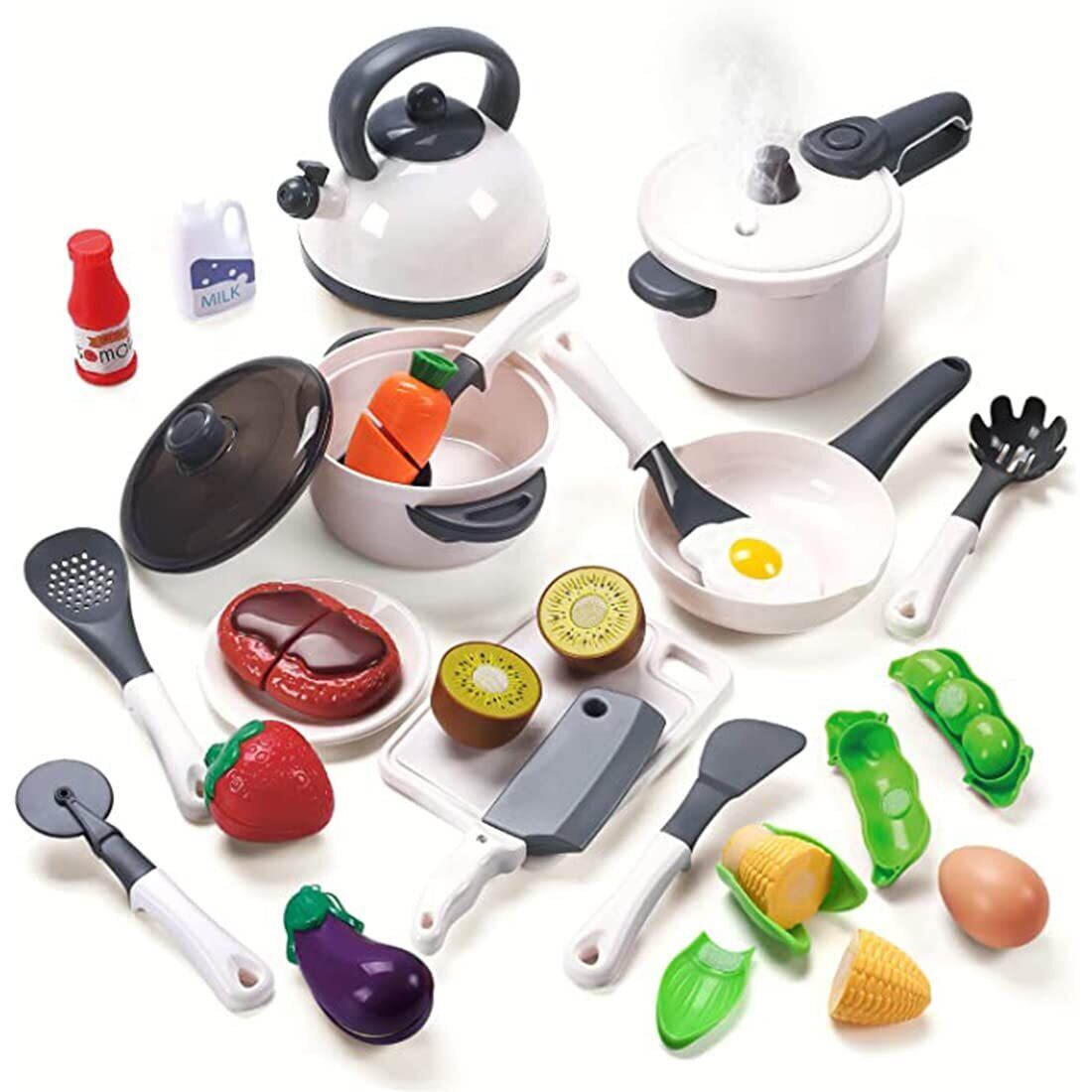 Cute Stone おままごとセット おもちゃ 知育玩具 27点セット リアル噴霧 圧力鍋 お鍋 ままごと用調理器具 贅沢食材 ごっこ遊び 親子遊び 誕生日プレゼント