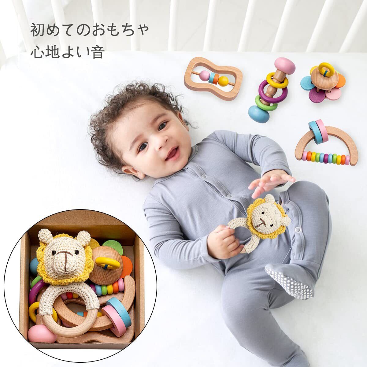 【赤ちゃんに掴みやすい】小さな手にぴったりのサイズ–この木製のガラガラは、室内おもちゃや赤ちゃんの保育園の教具として最適で、その質感が触覚刺激を提供します。入園祝い、クリスマスギフト、ハーフバースデー、出産祝いの贈り物にも相応しいです。