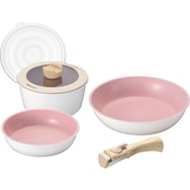 和平フレイズ 鍋セット 3点セット ピンク×ホワイト IH・ガス対応 マーブルコート ハンドルが外せる 魅せるフライパン MB-2164