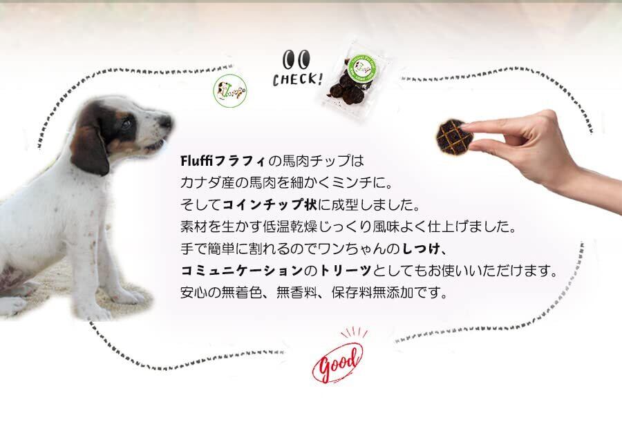 Fluffi 馬肉 100% 犬 オヤツ 大容量 馬肉ジャーキー (無添加 犬 馬肉 おやつ 馬肉チップス 150g)グルテンフリー グレインフリー アレルギー対応 手で簡単に割れる シニア