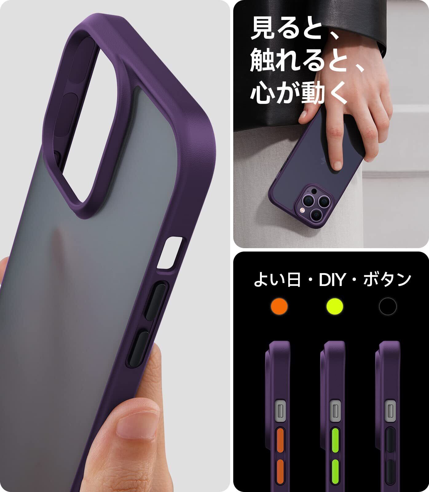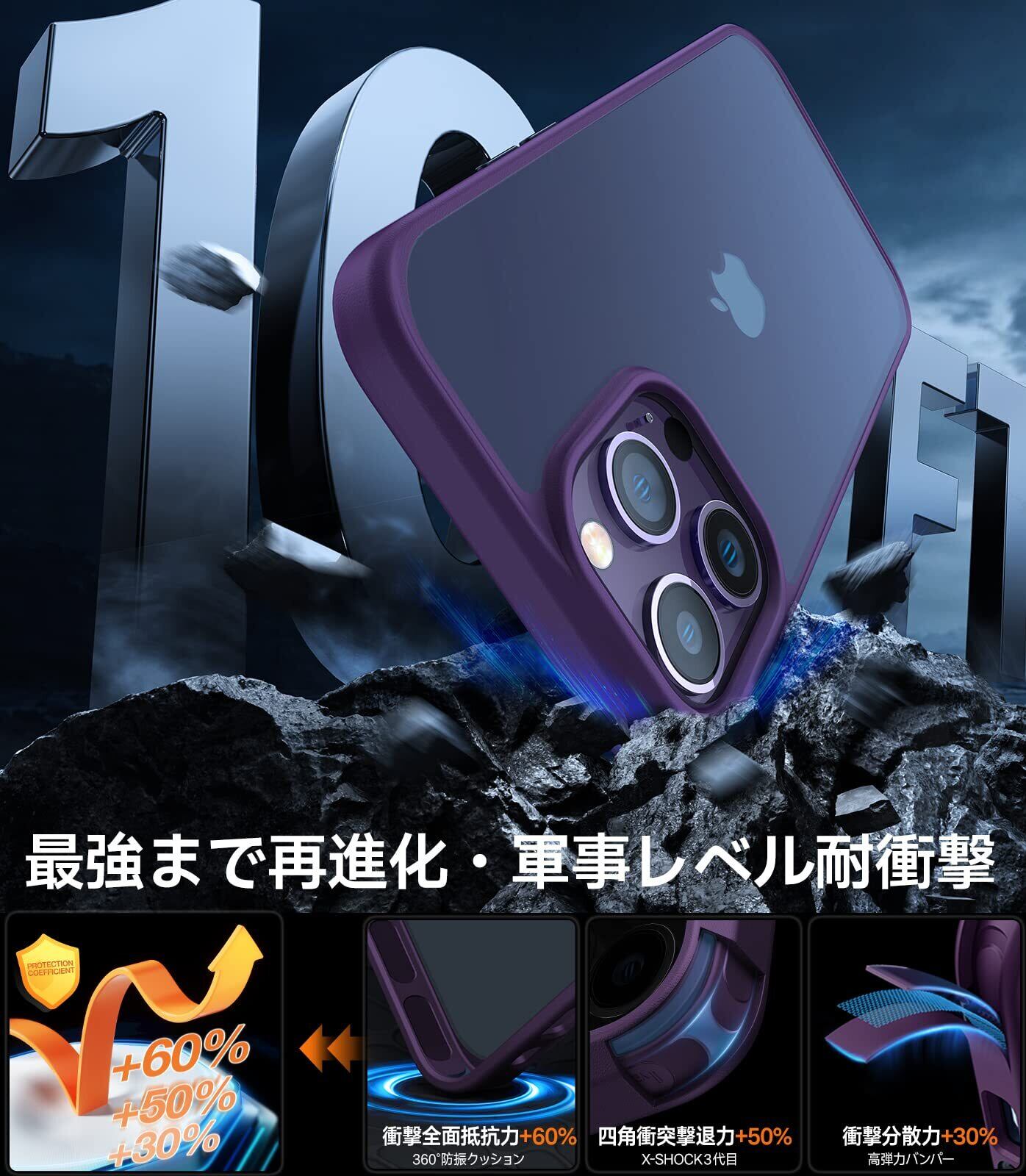 【米軍耐衝撃・無黄変】TORRAS iPhone14Pro 用 ケース 2.24M落下認証 半透明 指紋防止 マット感ケース 黄ばみなし ストラップホール付き レンズ保護 アイフォン14Pro 用 カバー パープル Guardian
