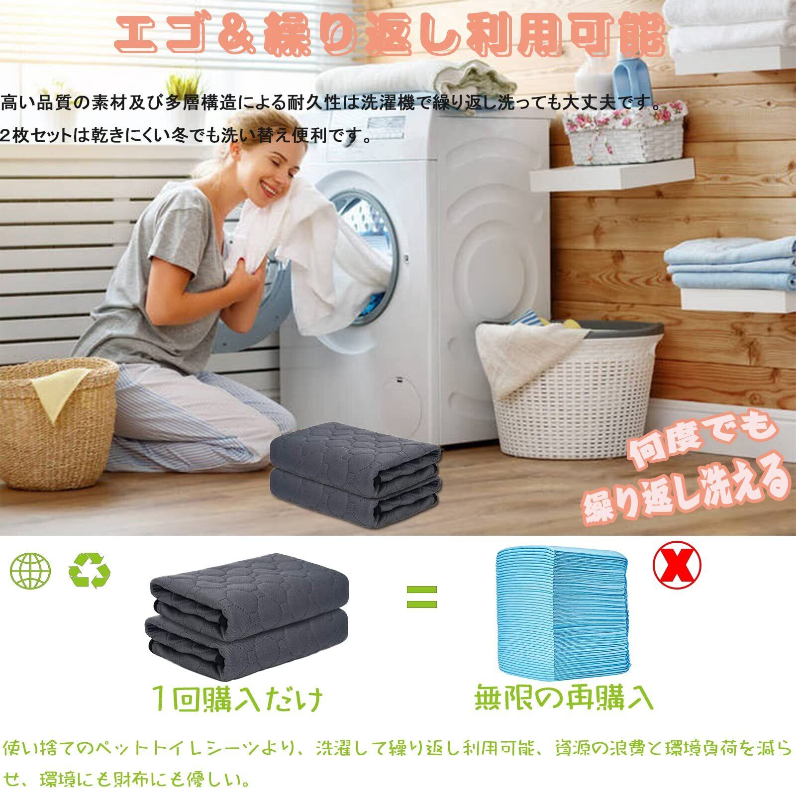 ペット用おしっこマット 2枚セット ペットマット 犬トイレシート 4重構造 超吸収 速乾 消臭 ペットシーツ 吸水 滑り止め 通気 ペット用介護マット 漏れ防止 抗菌 丸ごと洗える 小型 中型犬 猫用 トイレシート 下敷きマット 繰り返し利用可能 (70*50センチメートル(×2), ダークグレー)