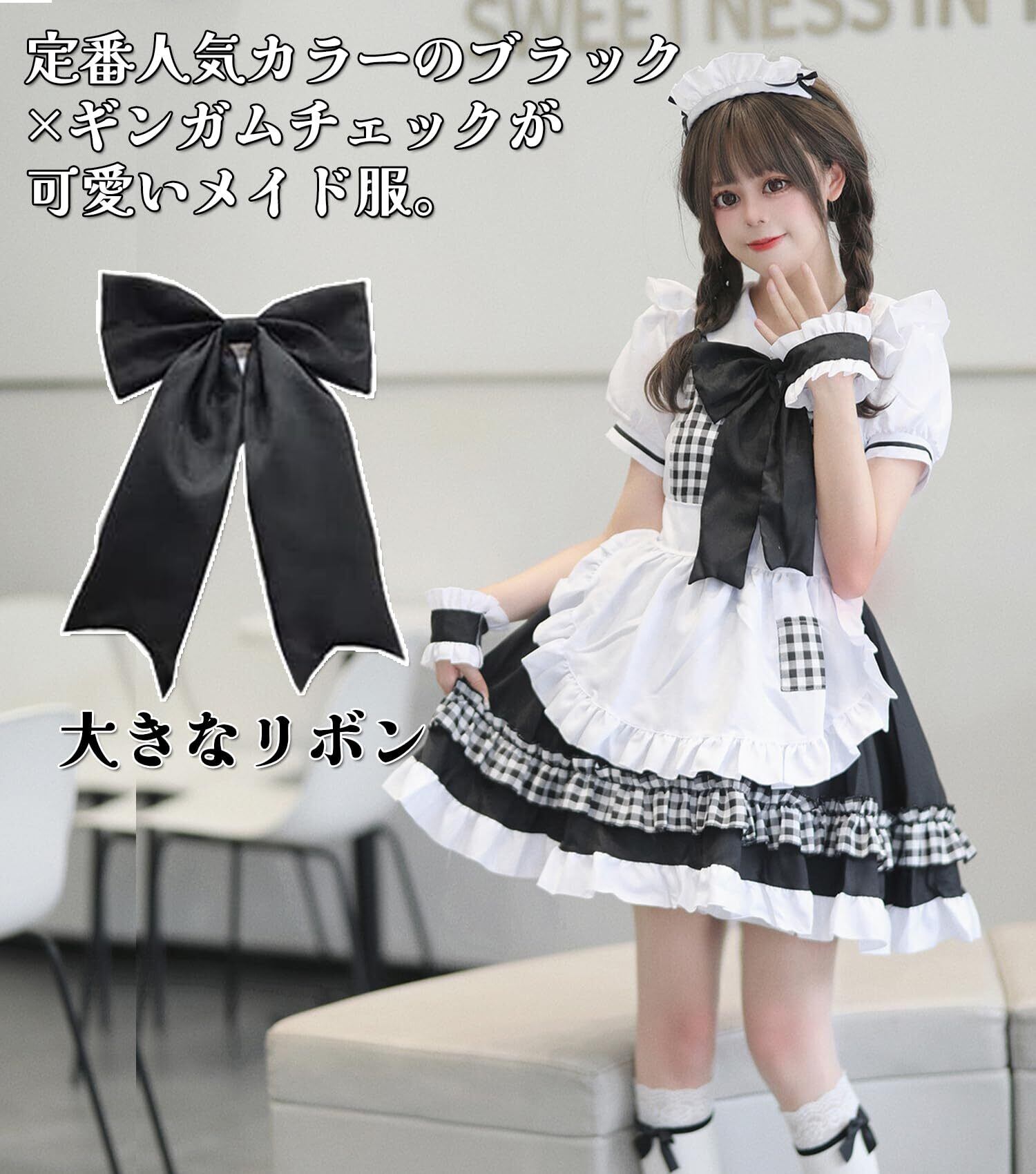 [FULINE] メイド服 かわいい メイド服 コスプレ 半袖 ロリータ ワンピース ドレス 大きい 蝶結ぶ メイドカフェー メイド 仮装 レディース ゴスロリ コスチューム