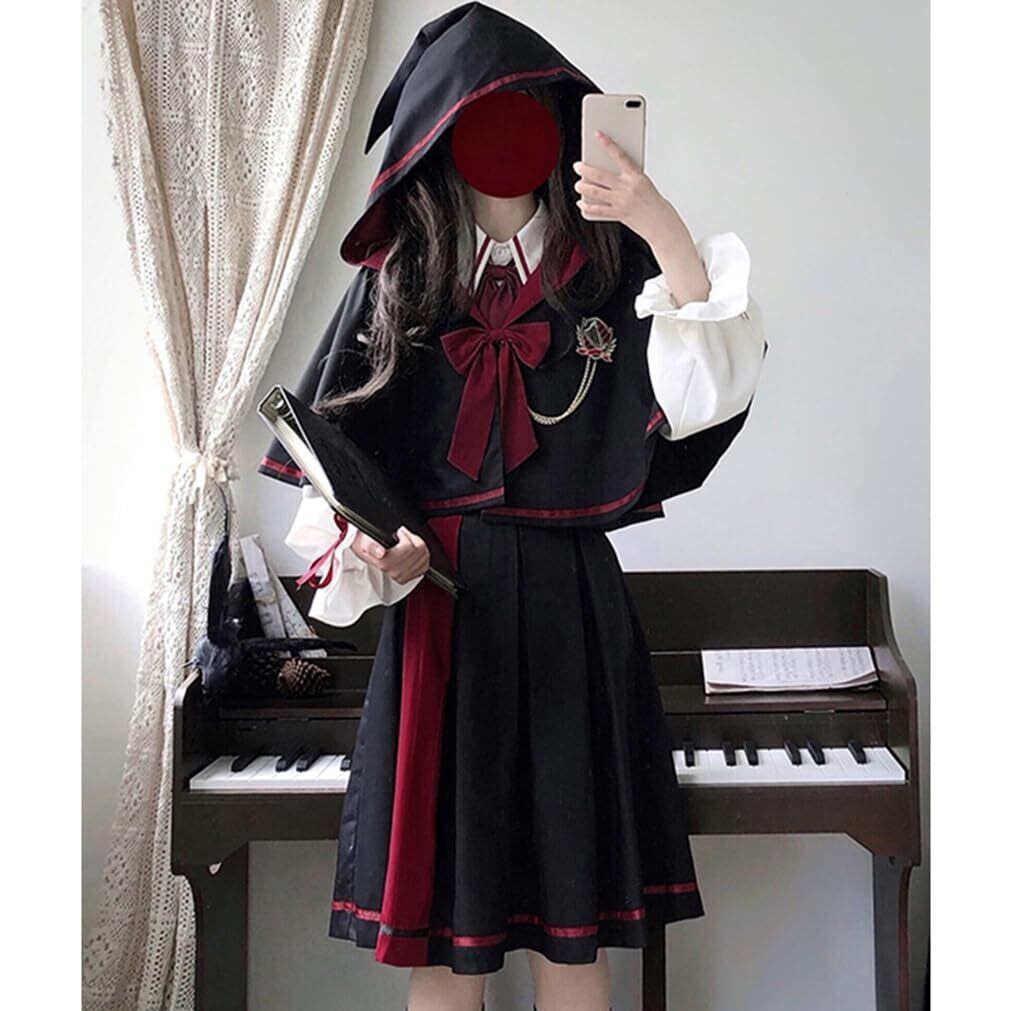 [トクとユウ] ワンピース ロリータ 長袖 ゴスロリ 衣装 制服 マント 森ガール 学生服 スカート lolita 魔法少女 学園風 コスプレ リボン お嬢様 ドレス コスチューム 中世紀 宮殿風 jk アニメ クリスマス イベント ハロウィン 文化祭