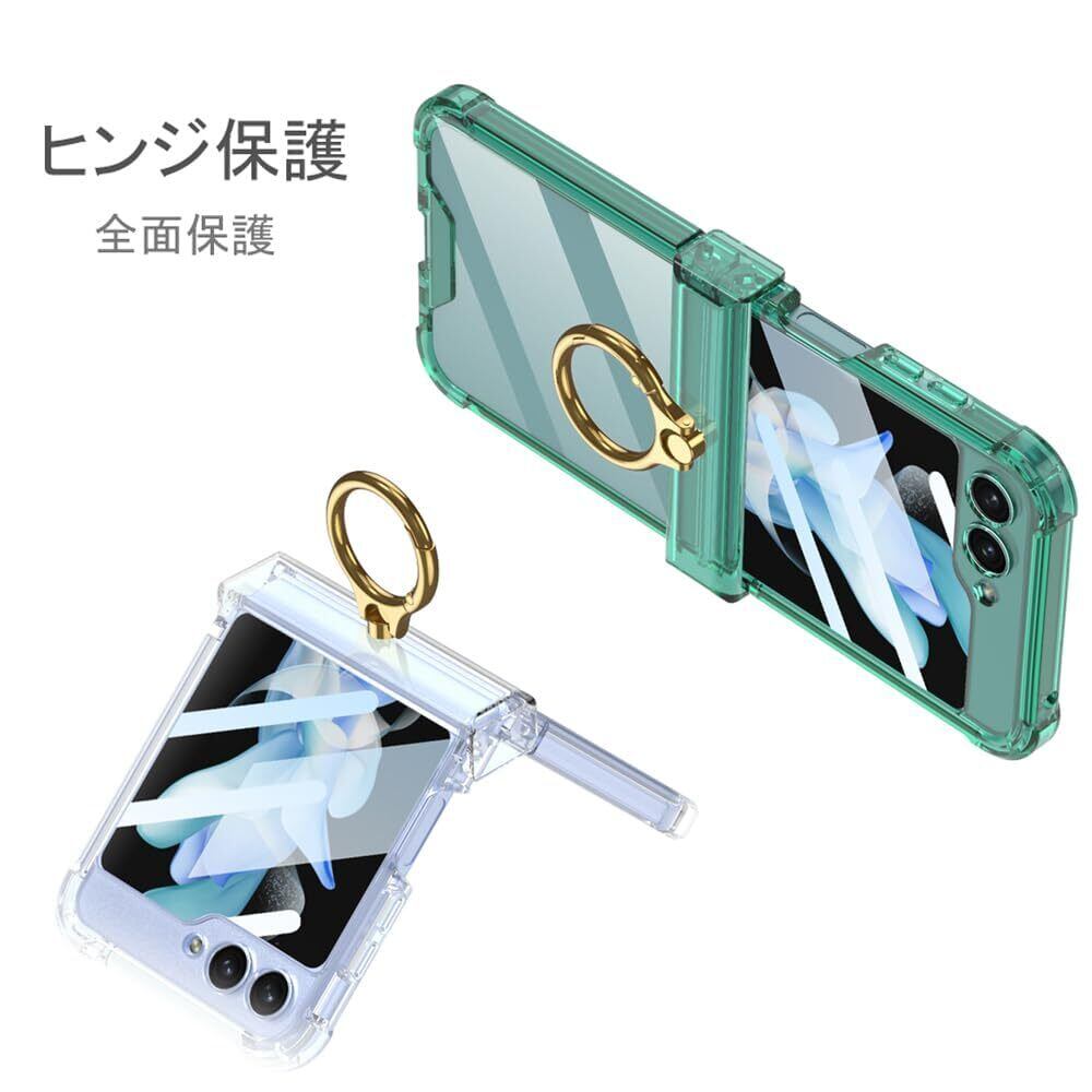 Galaxy Z Flip5 ケース クリア Samsung ギャラクシーzフリップ 5 / SC-54D / SCG23 用 カバー リング付き ヒンジ保護 Uovon スマホケース 耐衝撃 スタンド機能 ストラップ穴付き 超軽量 超薄型 黄変防止 おしゃれ・クリア
