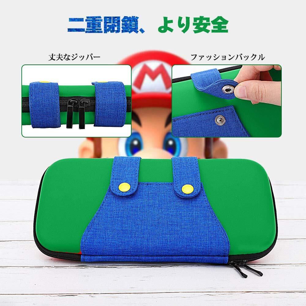 Switch ケース ATiC Switch 有機ELモデル対応 ニンテンドー スイッチ 収納バッグ EVA素材 耐衝撃 ゲームカード ケーブル イヤホンなど小物収納可能 マリオ 収納カバー Switch/Switch OLEDに対応 Green+Blue