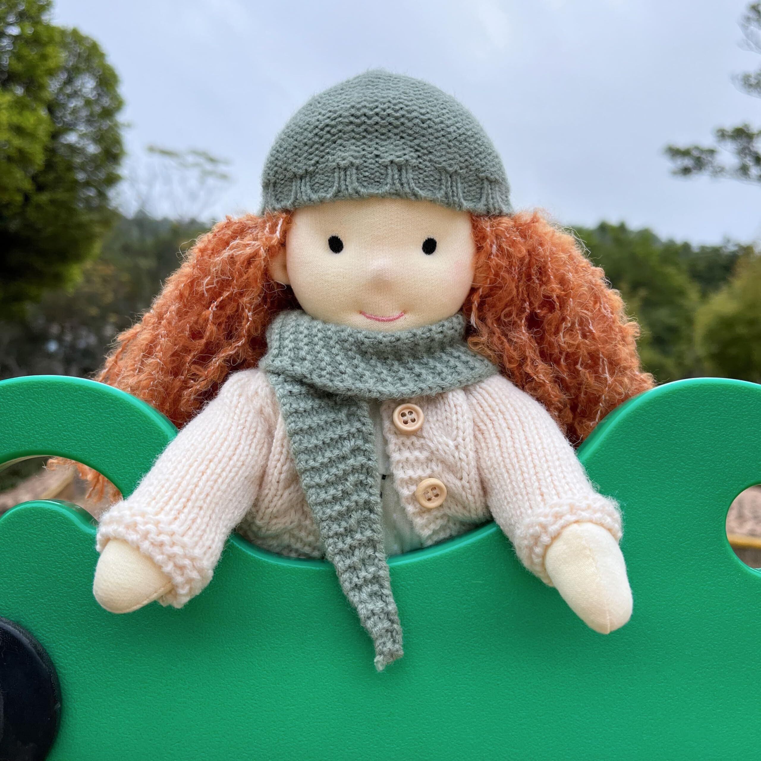 安全&ソフト:こんにちは!私の名前はCook、手作りのwaldorf人形です。身長は30cm、体重は約0.18kgで、体と顔は低刺激性でOEKO-TEX認証のウールコットンでできています。私の体にはプラスチックや金属は一切使われていません。