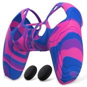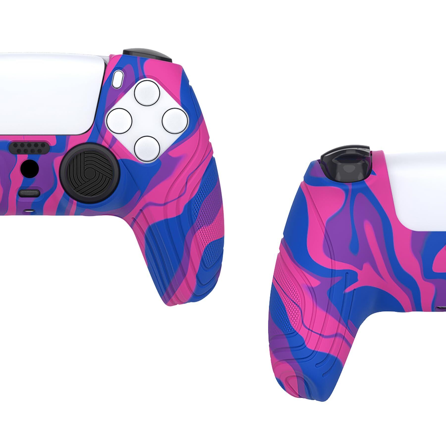 eXtremeRate PlayVital ps5コントローラーに対応用保護カバー、滑り止めコントローラーシリコンスキンケース、ps5コントローラー対応用人間工学に基づいたソフトラバー保護ケース親指スティックキャップ付き【サムライエディション】ピンク紫青
