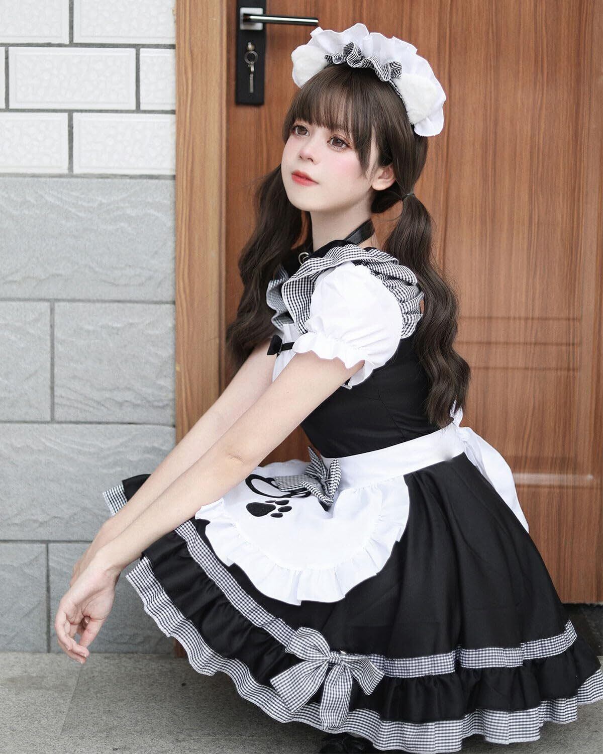※【セット内容】:「ワンピース」+「エプロン」+「カチューシャ」+「チョーカー」+「蝶ネクタイ*3」+「ストッキング」。