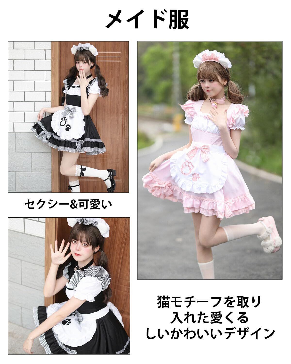[神併良品] メイド服 コスプレ セクシー&可愛い 猫 ロリータ 制服 アニメ ドレス レース アイドル衣装 ゴスロリ レディース カチューシャ コスプレ女仆 メイド喫茶 カフェ仮装 cute sexy cosplay