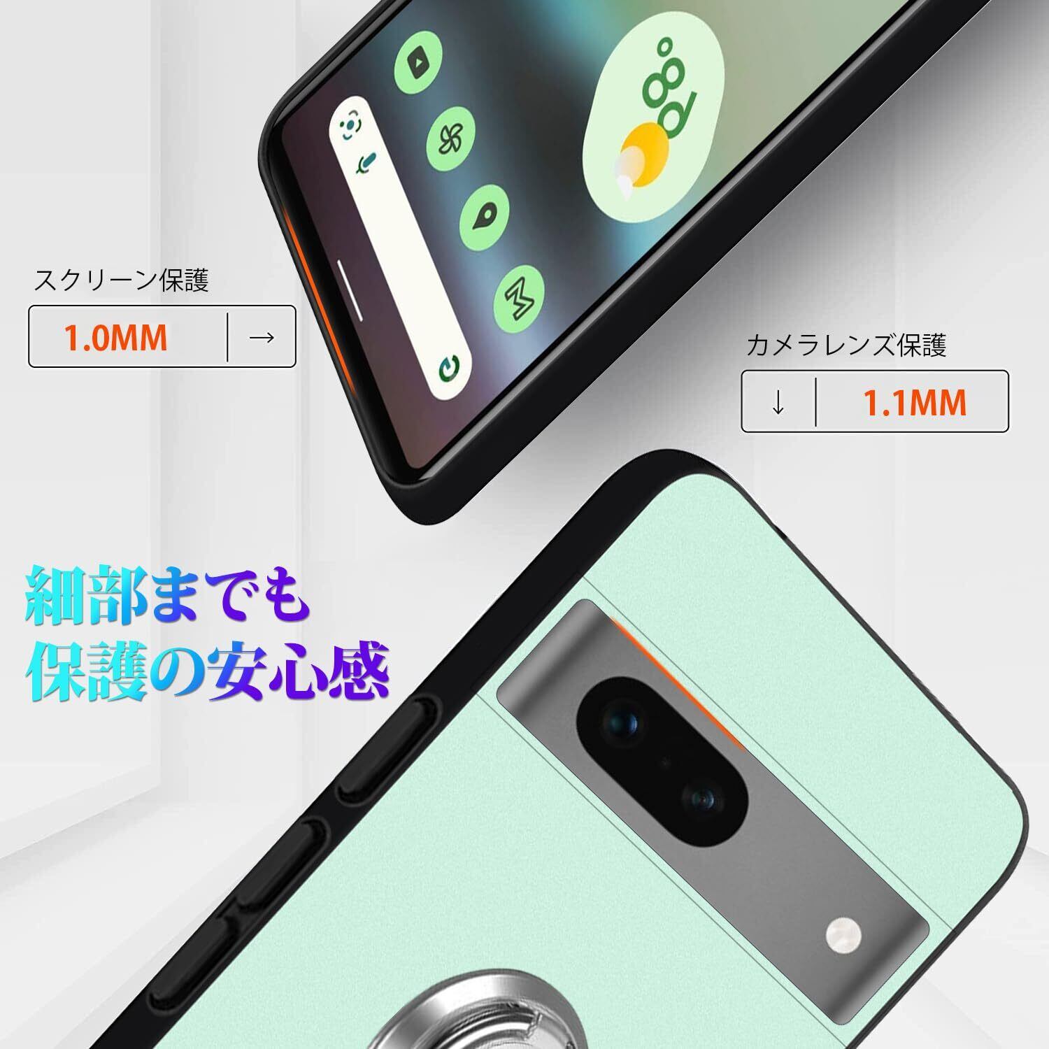 Google Pixel 7A ケースリング 耐衝撃 Pixel 8a カバー TPU 指紋防止 シリコン 車載ホルダー対応 360°回転 ストラップホール付き 滑り止め 落下防止 全面保護カバー(ライトシアン)