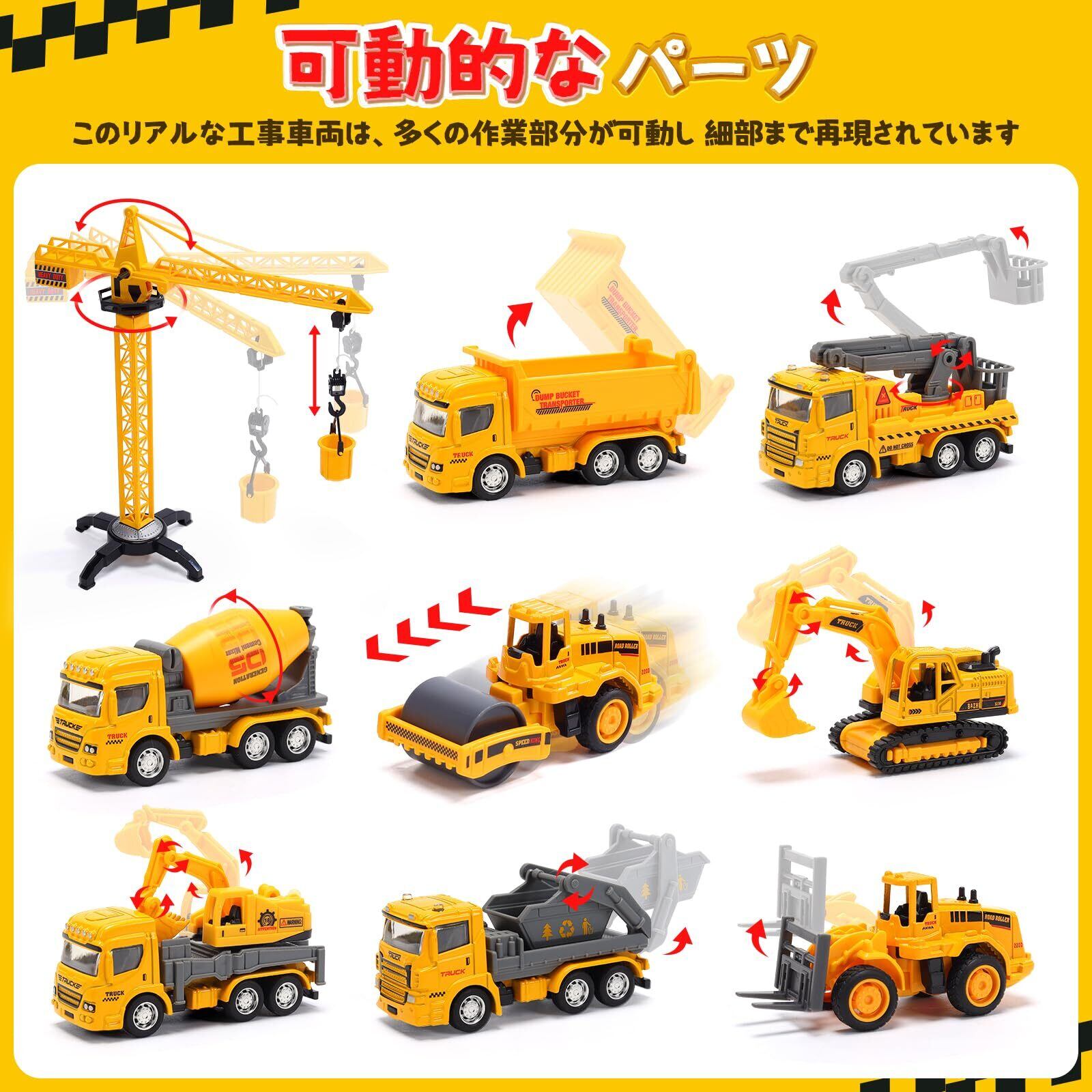 【本物のような可動パーツ】ショベルカー、ロードローラー、クレーンなど車は多くの作業部分が可動し、自由に曲げることができます。子供たちは上下に操作することができ、まるで本物の現場で遊んでいるかのような体験ができます。