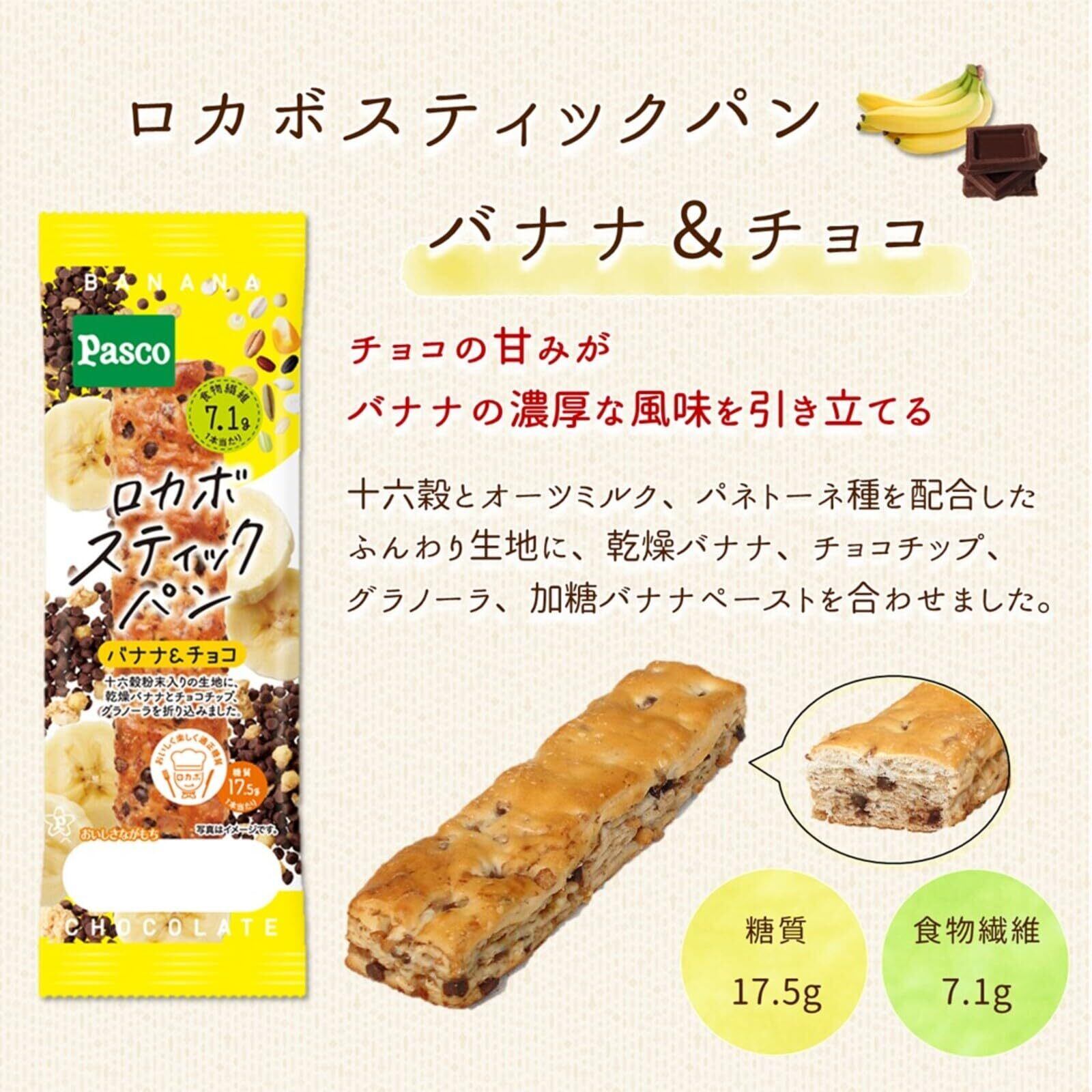 Pasco ロカボスティックパンセット 4種16個入(4種のフルーツ、チョコ、くるみ&アマニ、バナナ&チョコ)|パスコ パン 詰め合わせ ロカボ 食物繊維|朝食 間食 おやつ
