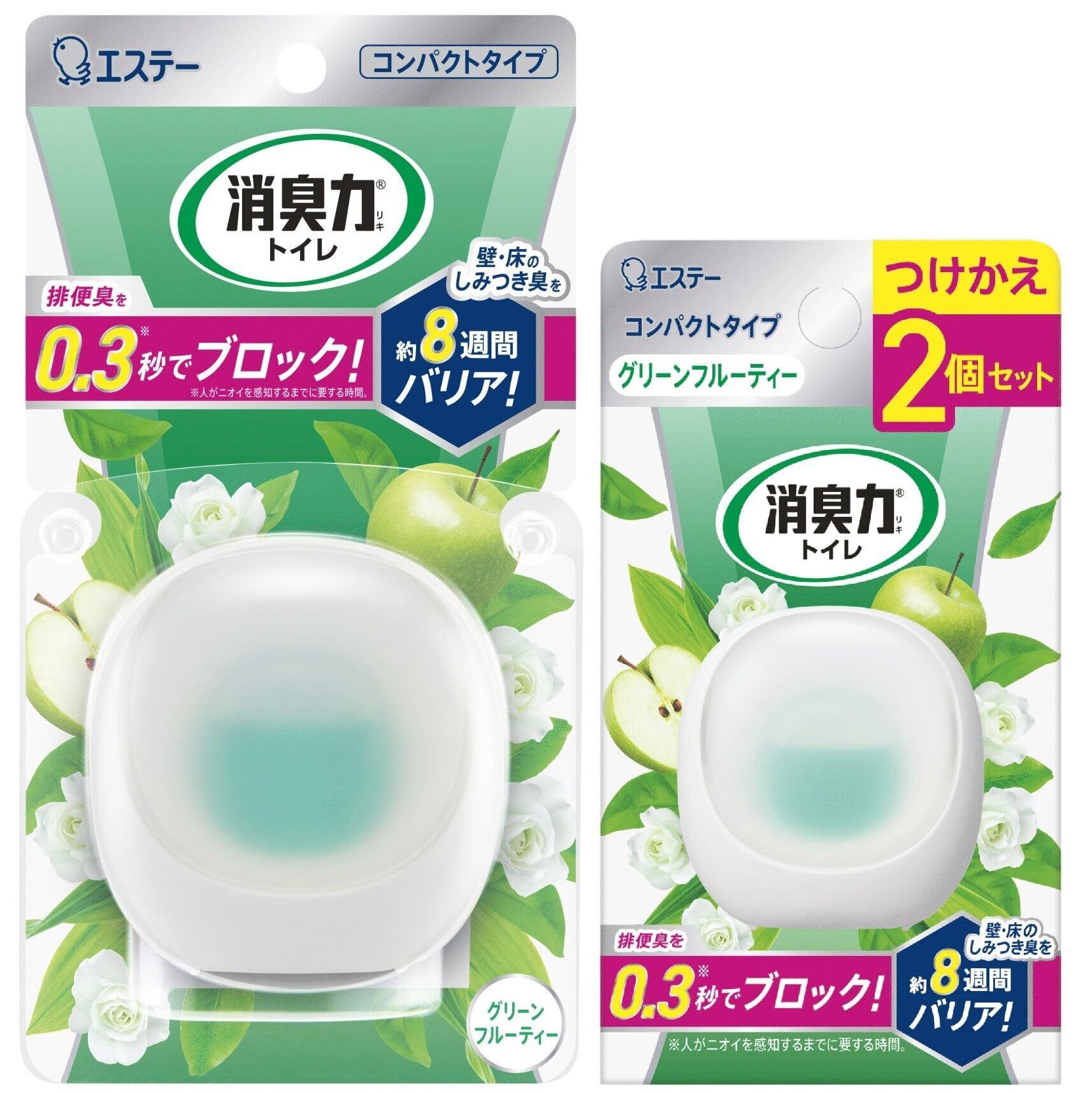 消臭力 トイレ コンパクト [まとめ買い] トイレ用 置き型 グリーンフルーティー本体1個 + つけかえ2個セット 消臭剤 消臭 芳香剤 おくだけ