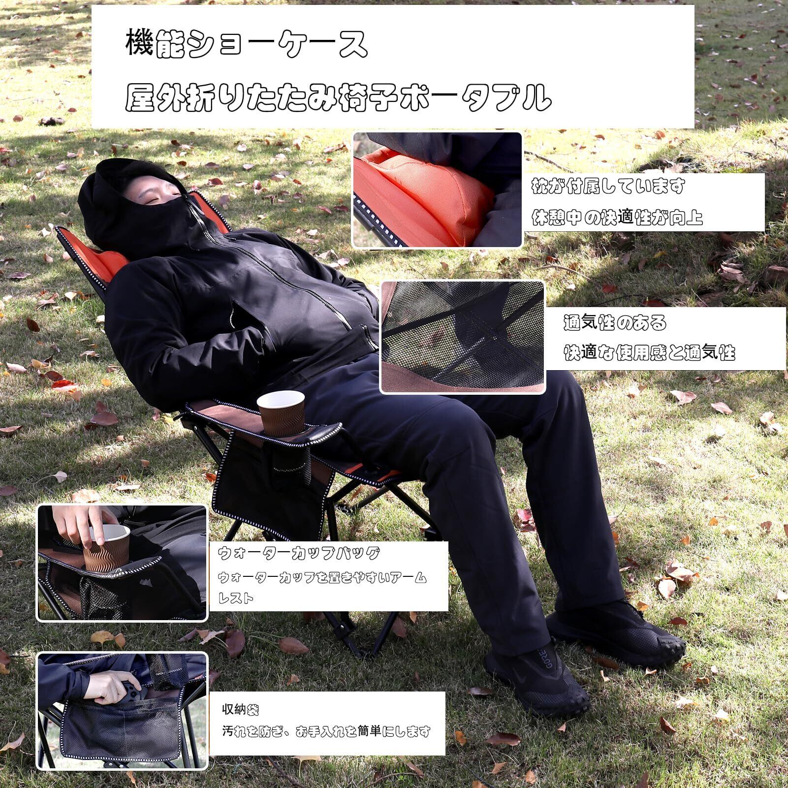 【持ち運びが簡単アウトドア チェア】折りたたみ椅子は取り外し可能なヘッドレストと首と背中のサポートを備えており、長時間座っても快適です。 ウォーターカップなどを置くのに便利なドリンクホルダー設計で、持ち運びに便利な専用収納バッグも付属しています。