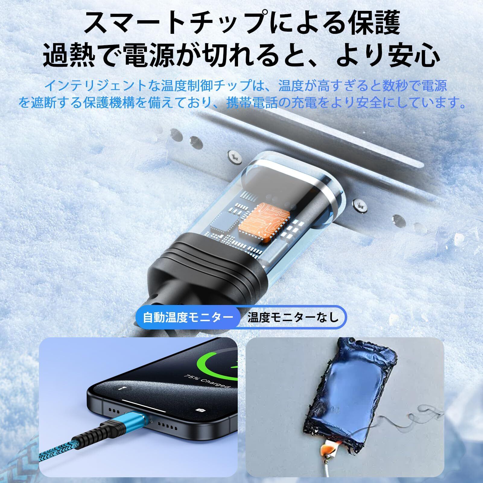 【安全且つ高速充電】このusbケーブルは安全性と信頼性の向上のため、56kΩレジスタの実装によりデバイスを短絡、過充電、過熱などから高安全保護します。銅製心線に内蔵し、電気抵抗が低く、より高速で安定な充電体験をお楽しみください。