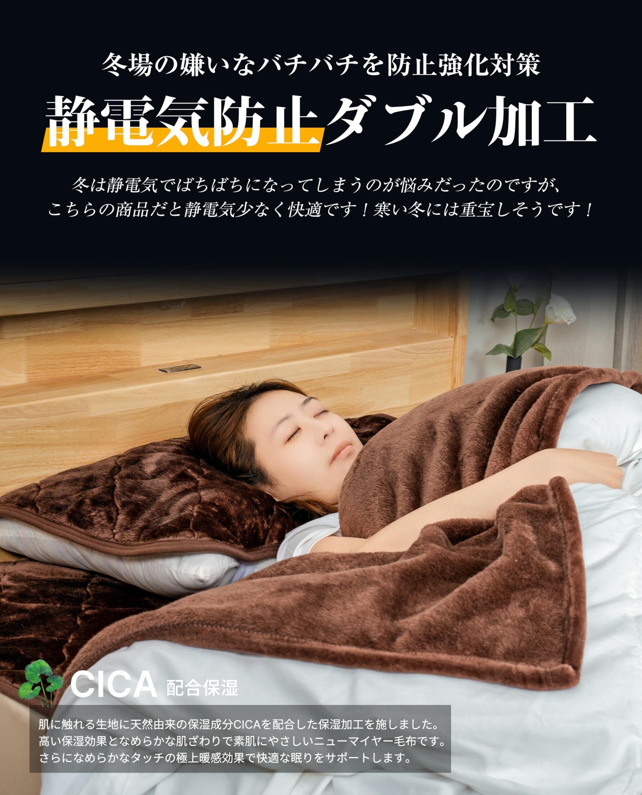 【極上暖感&極上タッチ】ブランケット 毛布 シングル 冬 ふわふわ あったか ニューマイヤー CICA保湿 柔らか肌触り なめらか オールシーズン 吸湿発熱 光触媒 抗菌防臭 静電気ダブル防止 速乾でお洗濯楽々 洗える 丸洗いOK (ブラウン・シングル 140x190cm)
