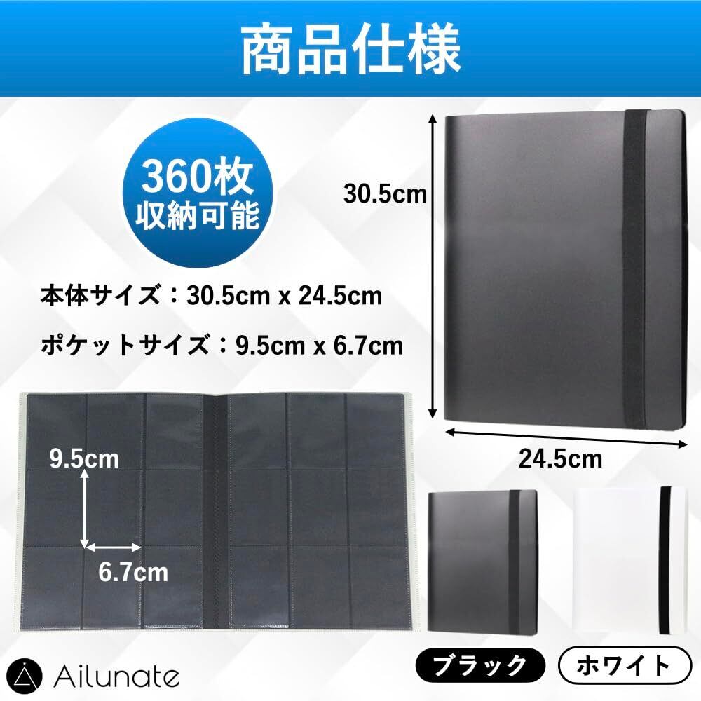 【商品仕様】本体サイズ:30.5cm x 24.5cm、ポケットサイズ:9.5cm、チェキ収納枚数:360枚、カラー:ブラック/ホワイト
