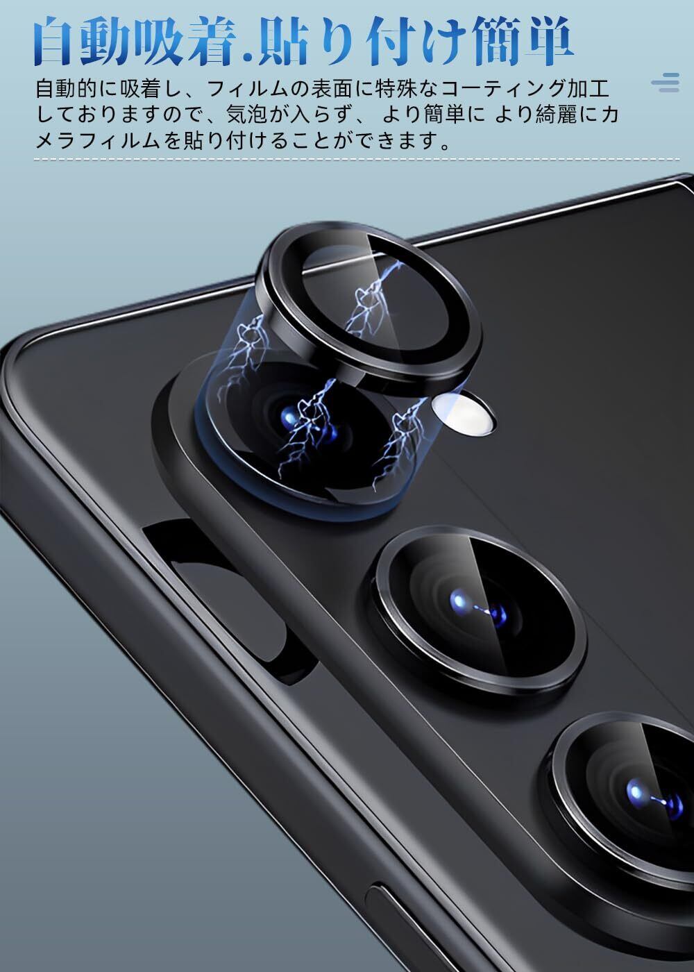 【高級感漂う単体仕上げ】Galaxy Z Fold 6 SC-55E カメラフィルムGalaxy Z Fold 6の独立型カメラために生まれた新作。フィルム全周はアルミ合金製リングとの融合で、本体のお洒落を向上しながら、ギャラクシーZ Fold 6本体の色味にもぴったり、抜群な一体感、上品な見栄えでカメラの魅力を格段にアップ。それに薄0.3mmのデザインと0.5gの軽さで、分厚さやケースと干渉などの悩みは全くない、いつでも楽に使える。