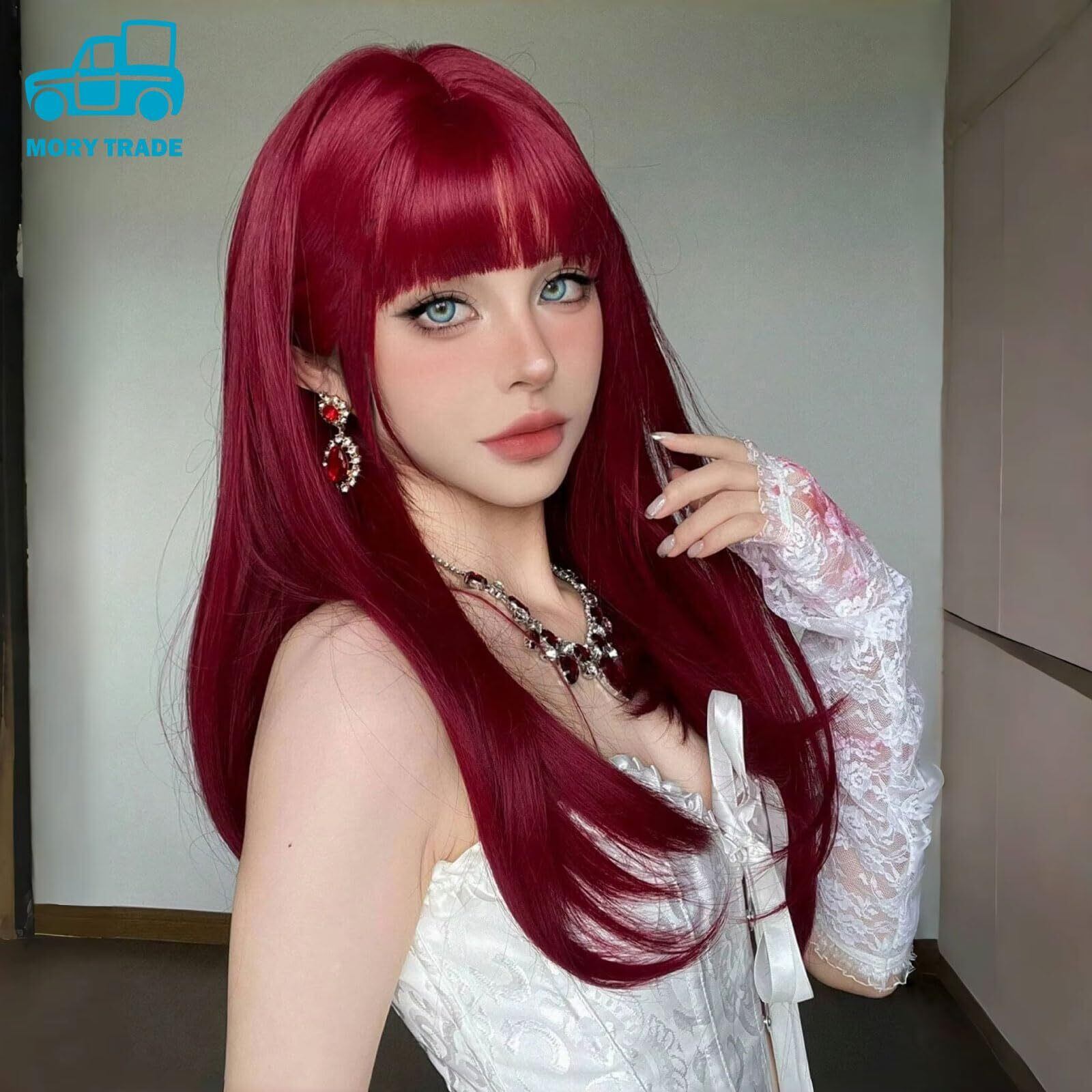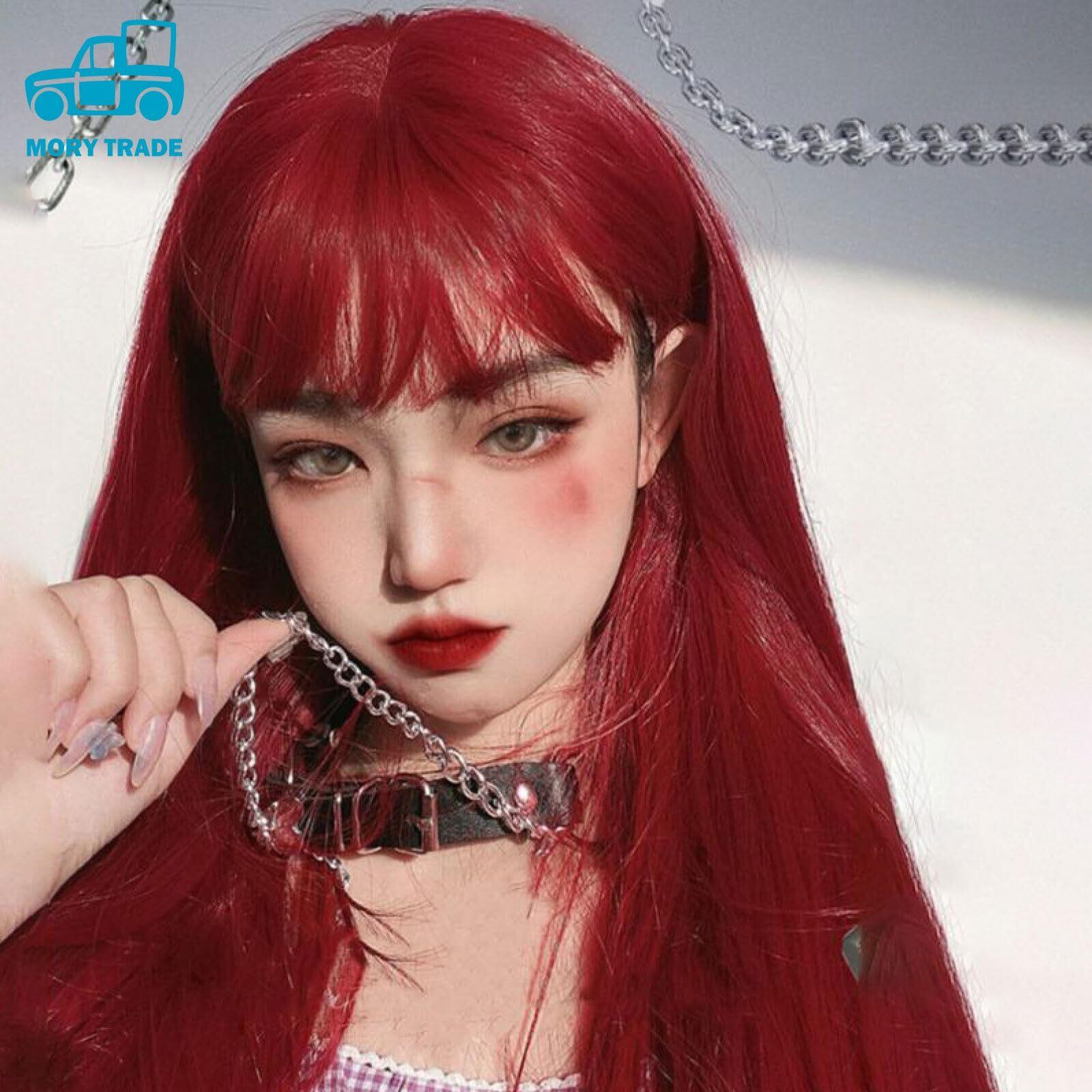 morytrade ウィッグ エルフ耳 3点セット コスプレ ロング ストレート かつら 仮装 ハロウィン (レッド)