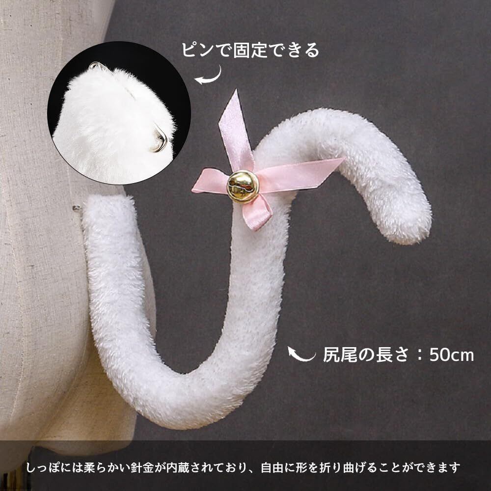 【ハロウィン白猫コスプレ】セット内容:猫耳カチューシャ、肉球手袋、しっぽ、チョーカー。適応場合:ハロウィンやクリスマスなどの場合だけでなく、舞台演出やコミケなどのさまざまな場合にも適しています