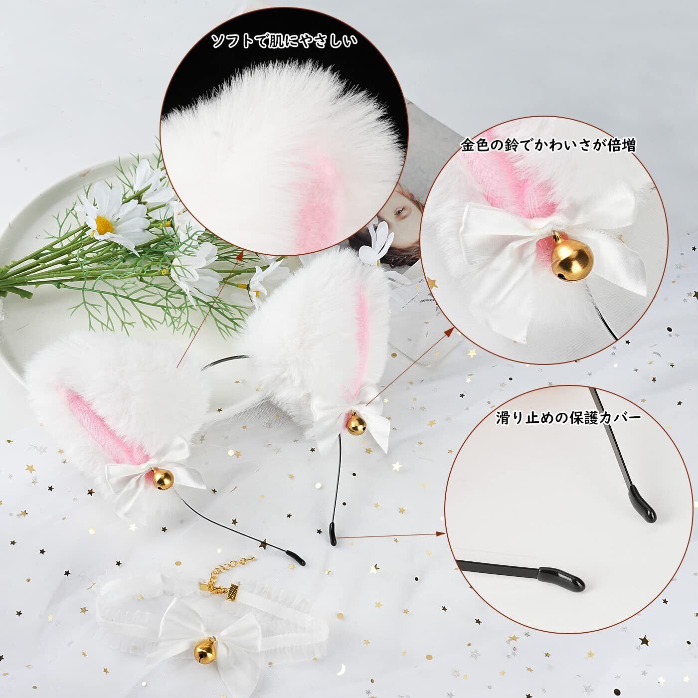 Sucodver 猫耳 カチューシャ 肉球手袋 尻尾 チョーカー 鈴付き やわらかい ハロウィン コスプレ 小物 4点セット (ホワイト)