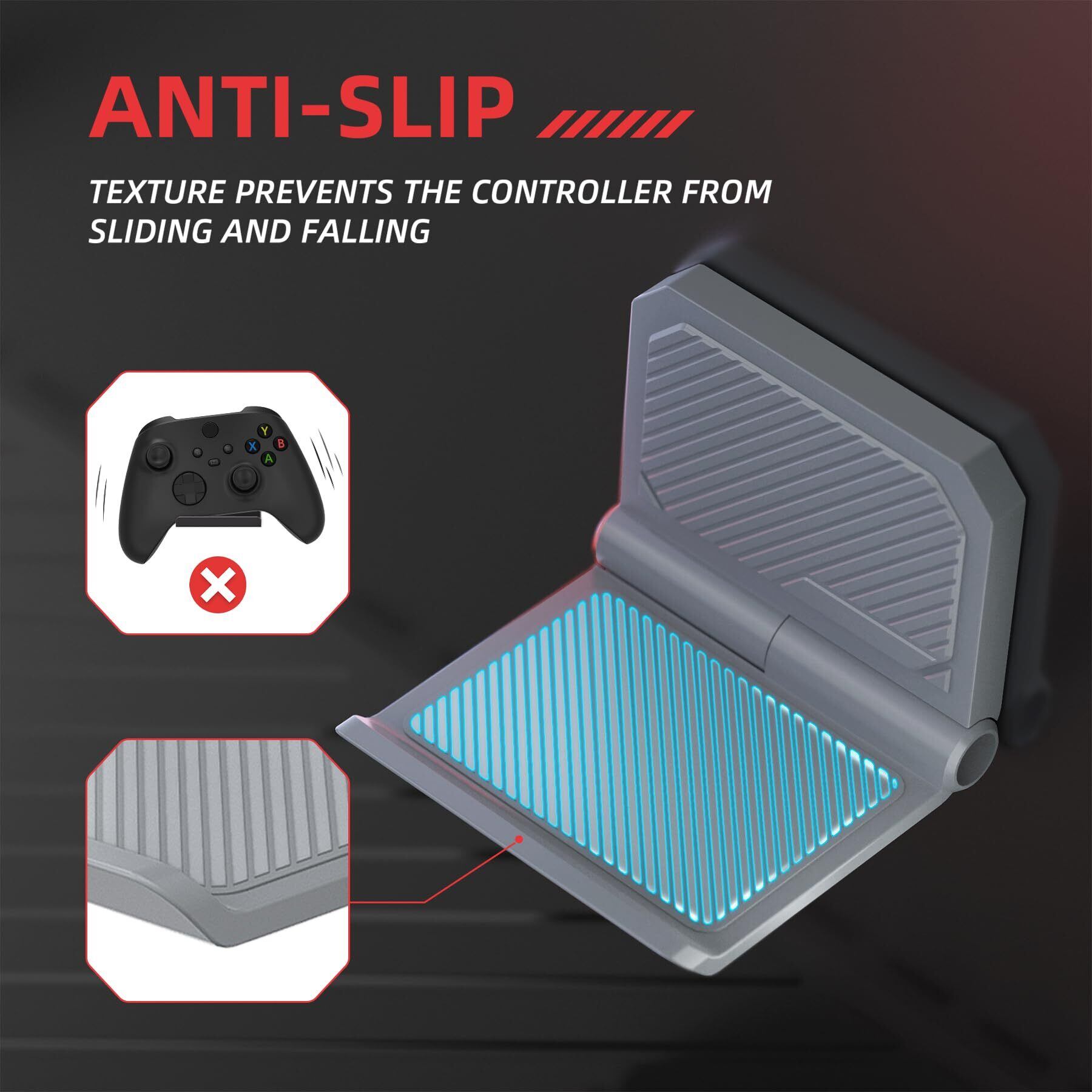 コントローラーの壁ホルダーの表面にある長いツイル滑り止めラインにより、コントローラーとゲームヘッドフォンを効果的に固定し、揺れを軽減し、偶発的な落下を防ぎます。