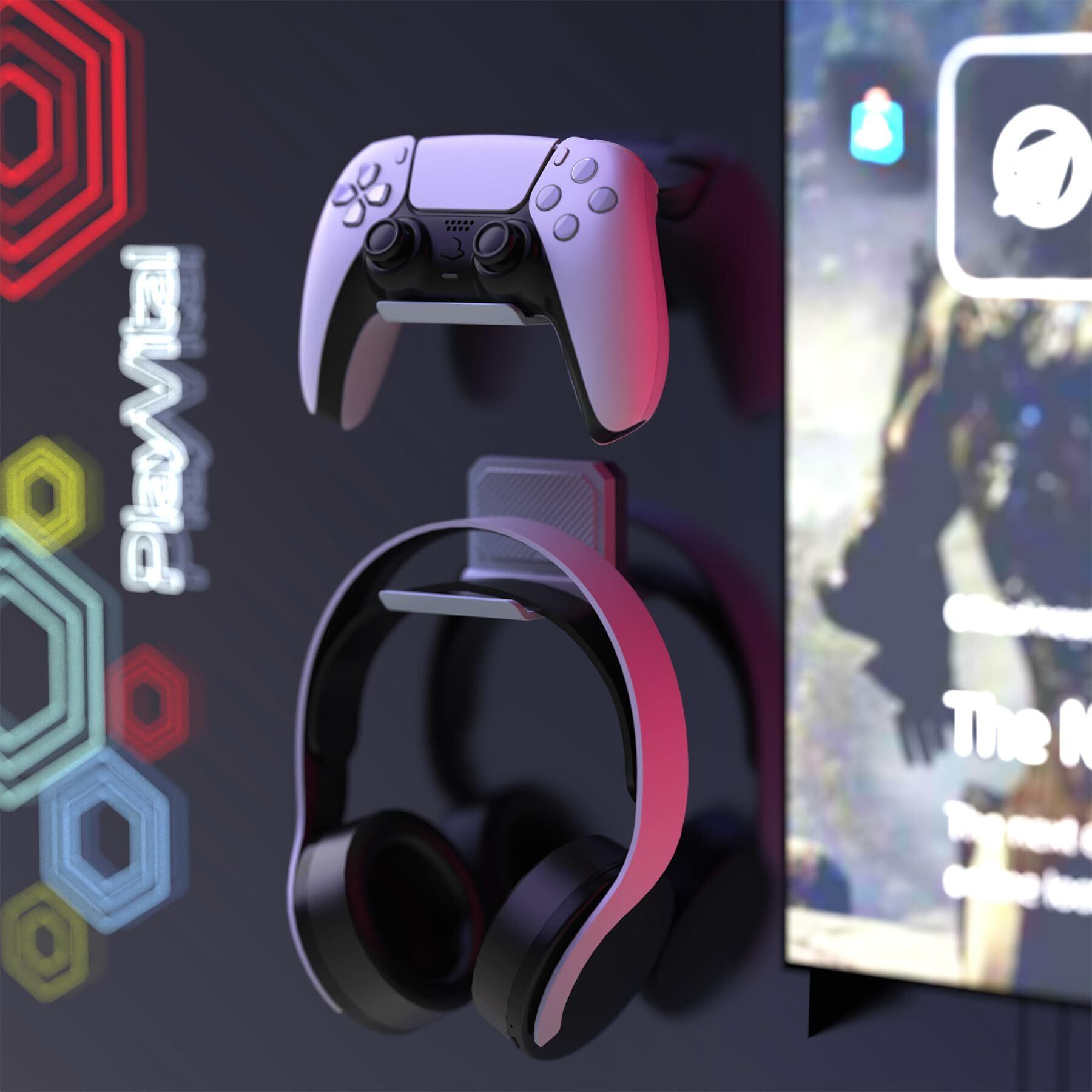 PlayVital FOLD ps5/ps4コントローラー対応用ウォールマウントスタンド、Switch Pro対応、xboxシリーズ X/S対応用折りたたみ式ウォールスタンド、ゲーミングヘッドセットスタンド、Xboxワイヤレスヘッドセット対応やPulse 3Dヘッドセット対応用ウォールホルダー【グレー-4セット】