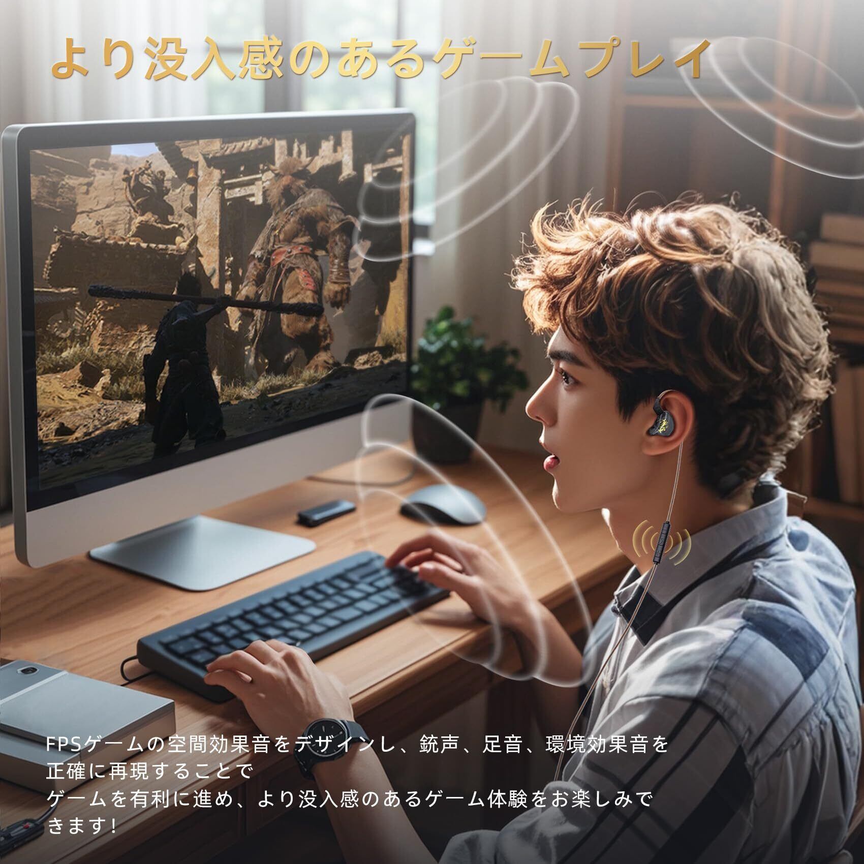 Yinyoo KBEAR K01 monkey ゲーミングイヤホン FPSゲーム向けに空間音響効果がある イヤモニ 3.5mmプラグ 有線イヤホン 有線 ゲーム イヤホン ノイズキャンセニング インイヤーモニター HiFi音質 重低音 在宅勤務/配信/通勤/通学/スポ一ツ/音楽モニター用(ブラック・マイク無し)