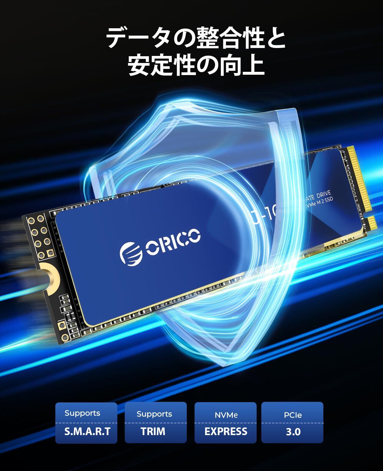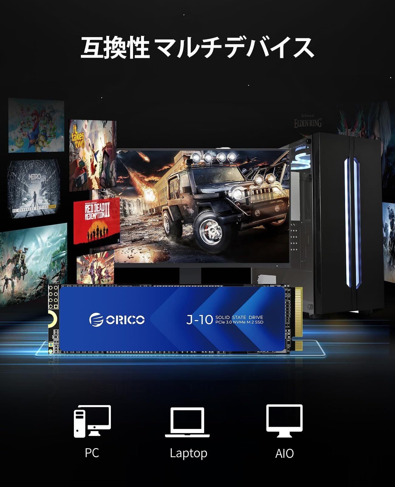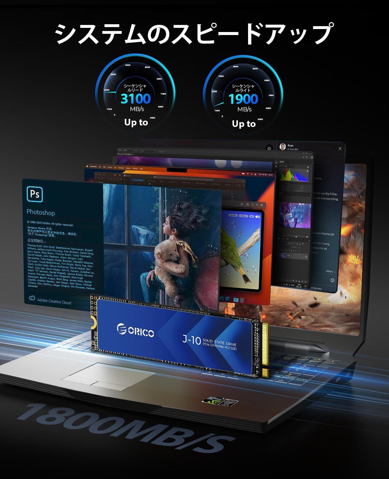 ORICO J10 SSD 1TB NVMe1.4 M.2 Type 2280 PCIe Gen3×4 最大読込:3100MB/s (R:3100MB/s、W:1900MB/s) 内蔵SSD 高耐久 3D NAND メーカー 5年