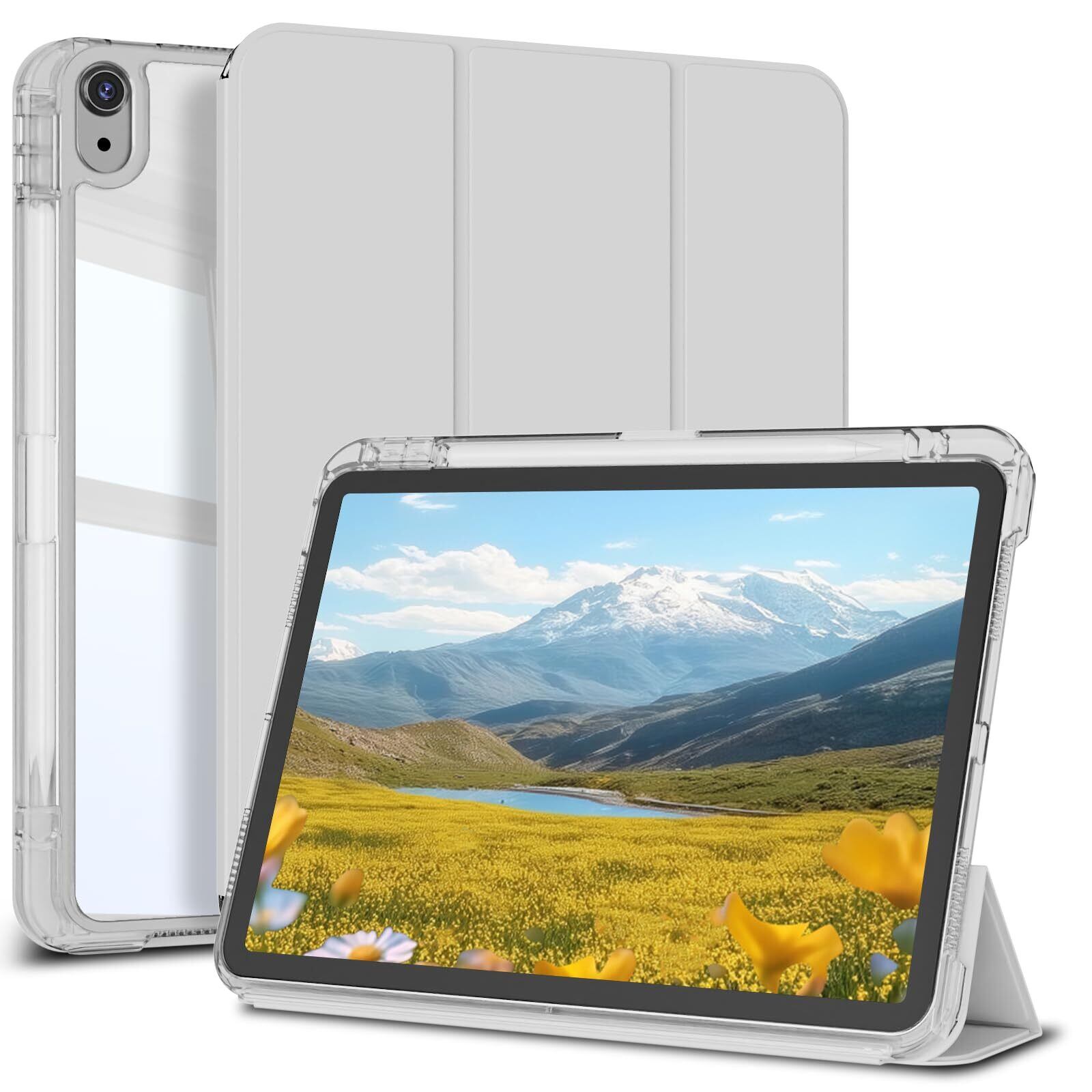 KVTVOU iPad Air 11インチ M3/M2 ケース 2025/2024 iPad Air 5世代/4世代 分離式 ケース 取り外し可能 PC 透明 クリア 縦置き/横置きスタンド ペンシル収納可能 オートスリープ 軽量 薄型 耐衝撃 iPad Air 5/4 カバー グレー