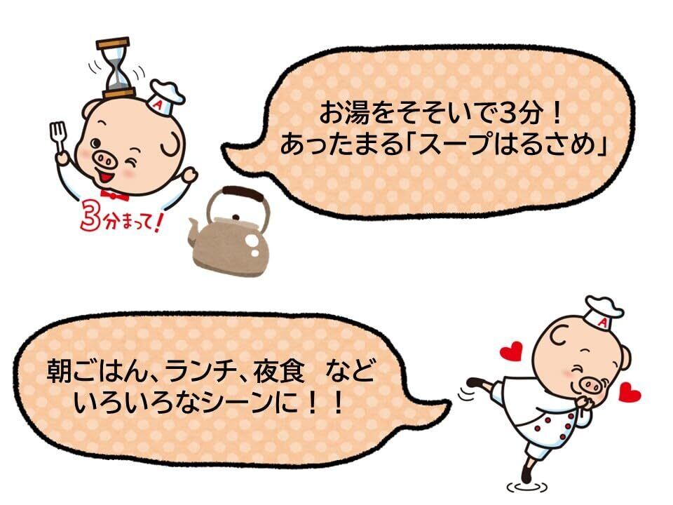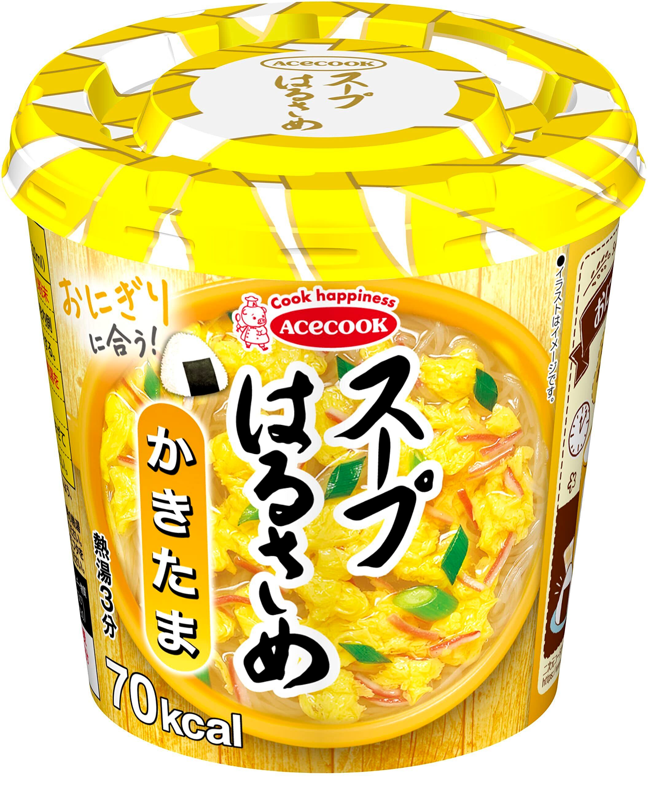 みんなに愛されて20thAnniversary! 20周年を記念し、ミッフィーが寄り添う可愛らしいパッケージデザインで楽しい食事を演出! エースコックのスープはるさめシリーズは、「おいしいヘルシー、ちょうどいい。」をコンセプトに、おにぎりをはじめ色々なものと組み合わせて食べるのにちょうどいい量・味・カロリーを目指す事で、いつもの食事に彩りと広がりを提供するカップスープです。 「スープはるさめ かきたま」 鰹や改の魚介の旨みを利かせた、やさしい味わいの和風スープです。たまごの風味を活かしたまろやかな味わいに仕上げています。具はとろっとした食感の卵ブロック、かに風かまぼこ、ねぎで仕上げました。(70kcal)