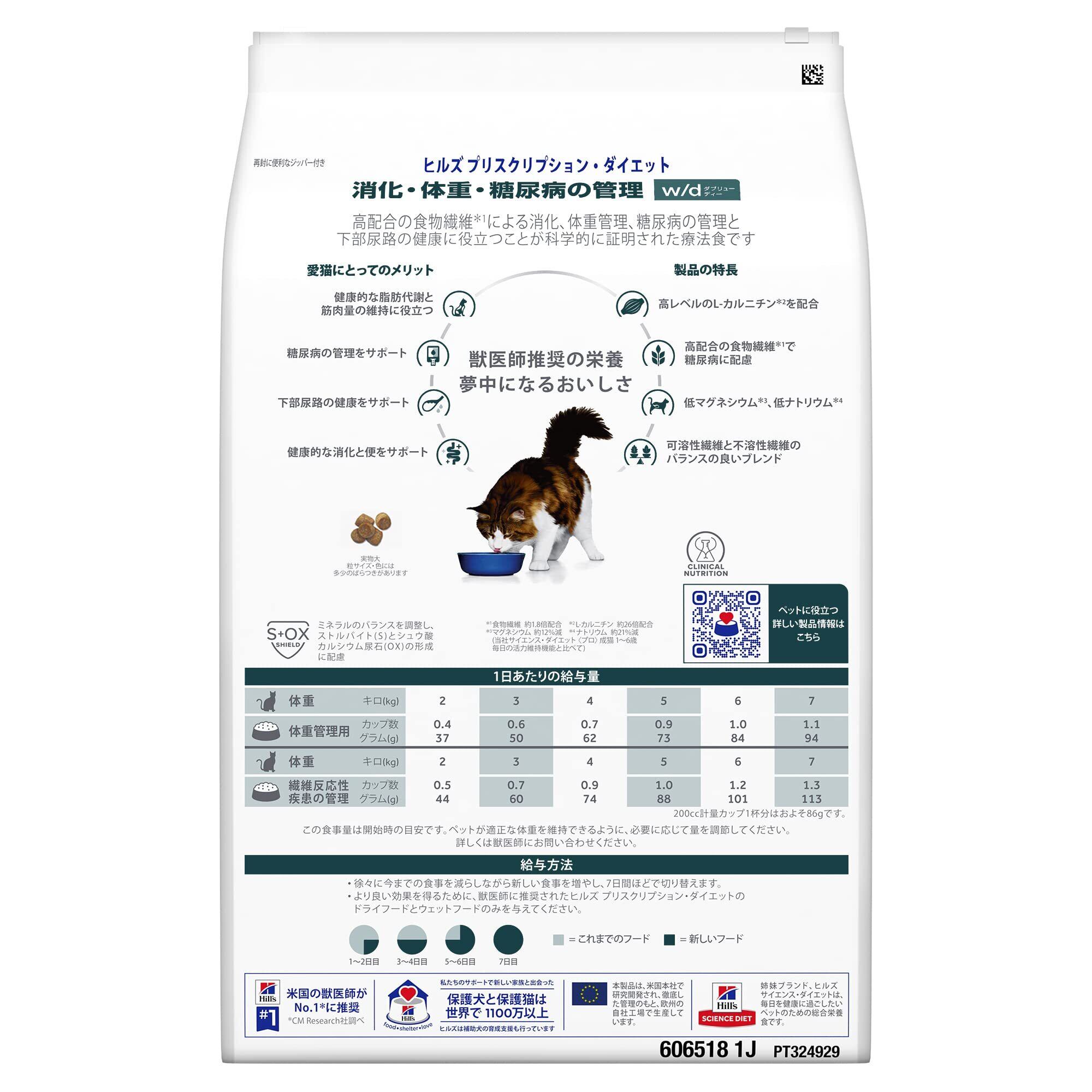 ヒルズ プリスクリプションダイエット キャットフード ドライ w/d ダブリューディー チキン 消化/体重/糖尿病管理 猫用 特別療法食 4kg